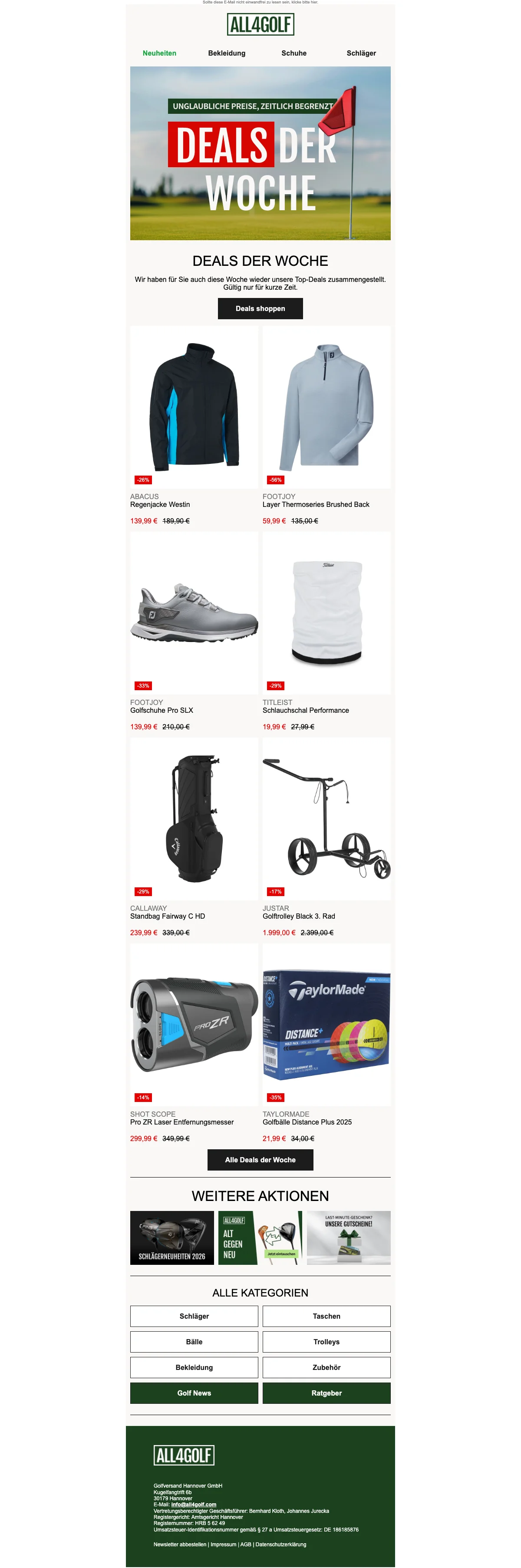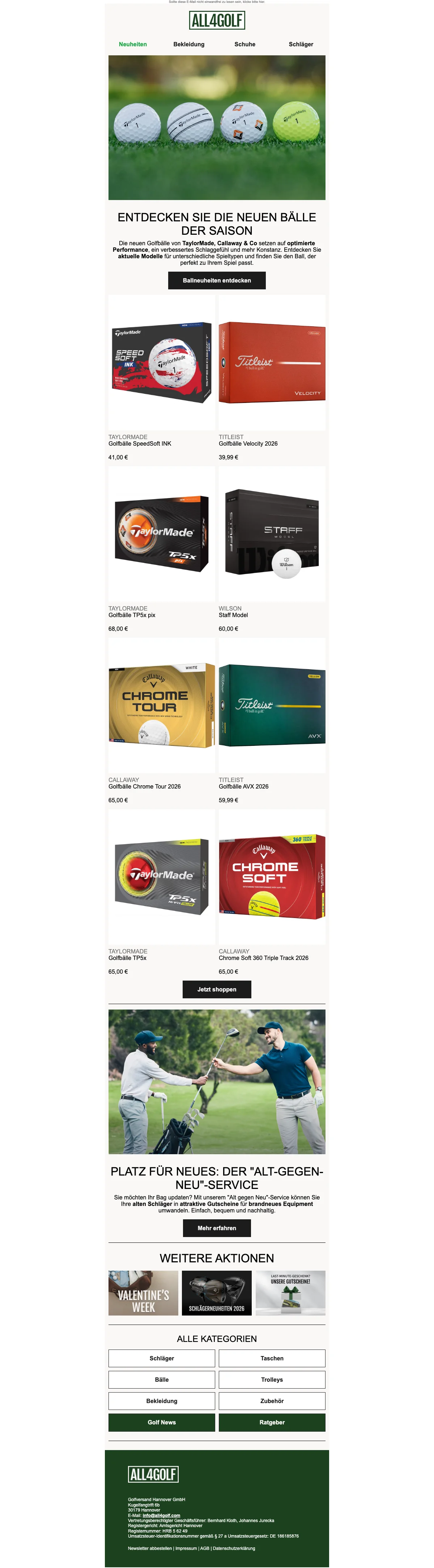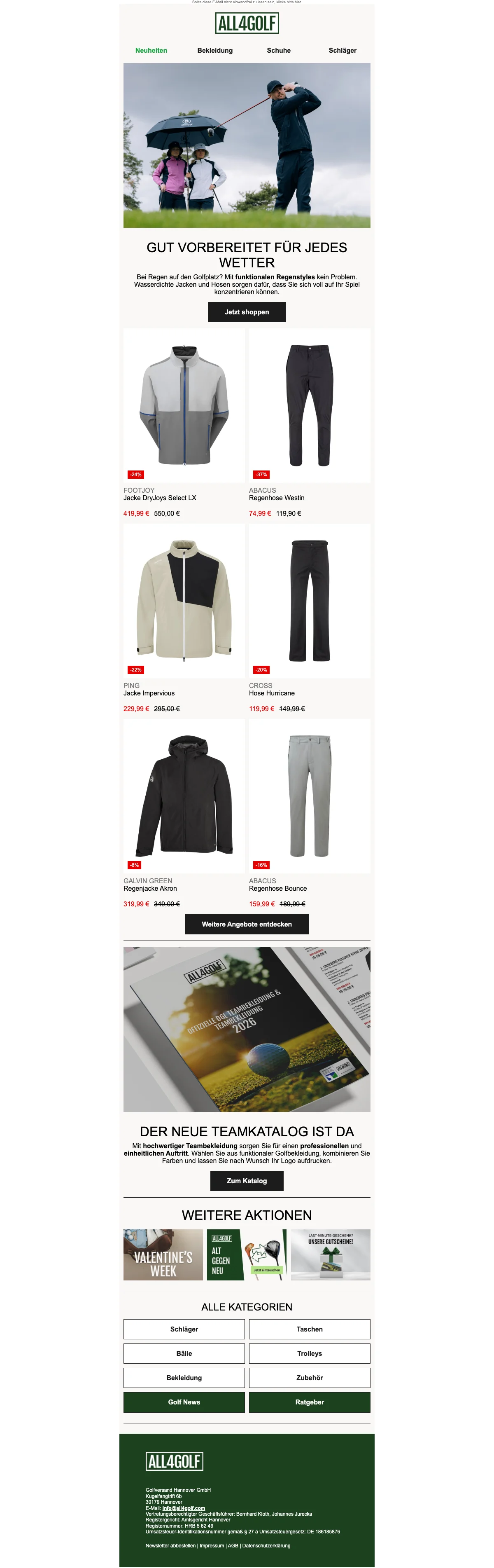 All4Golf Valentine's Week Mode-Highlights bis zu 70% auf Bekleidung