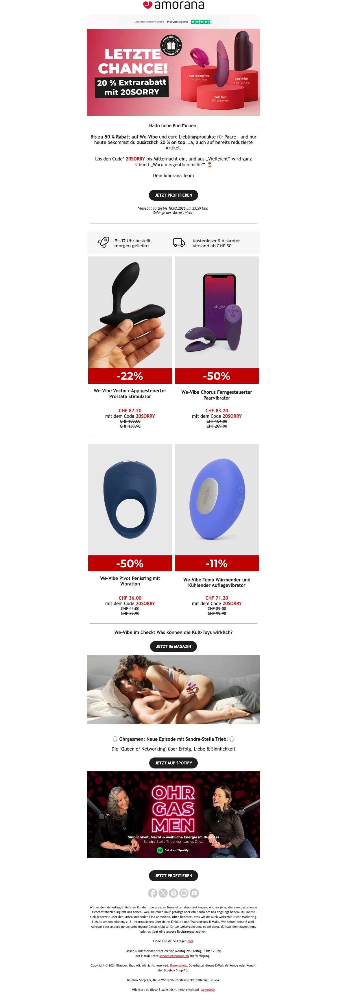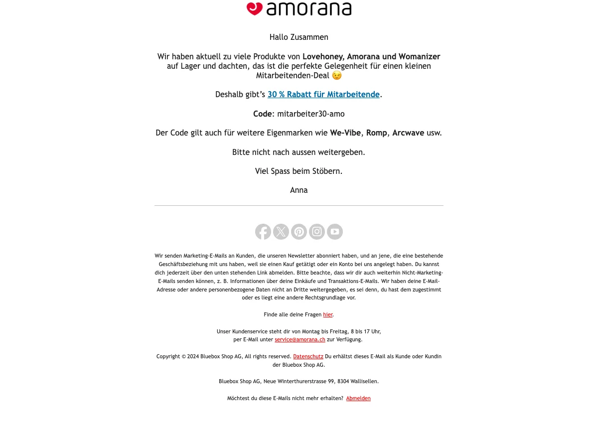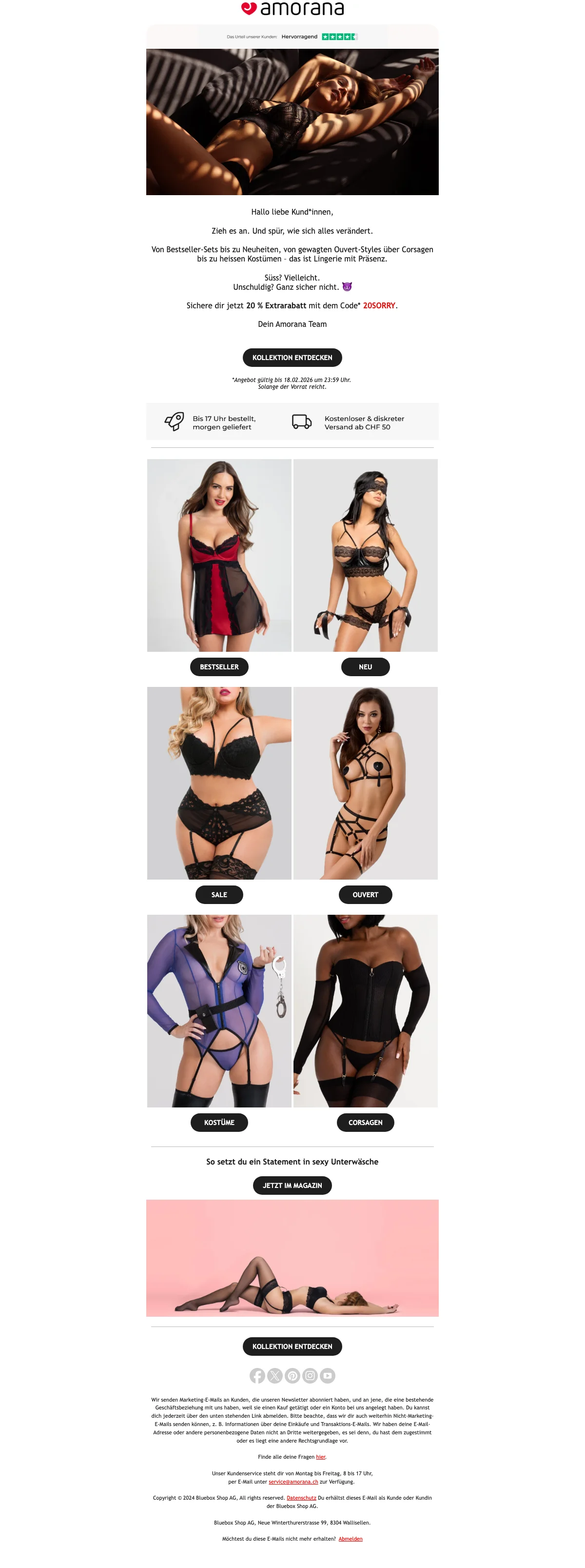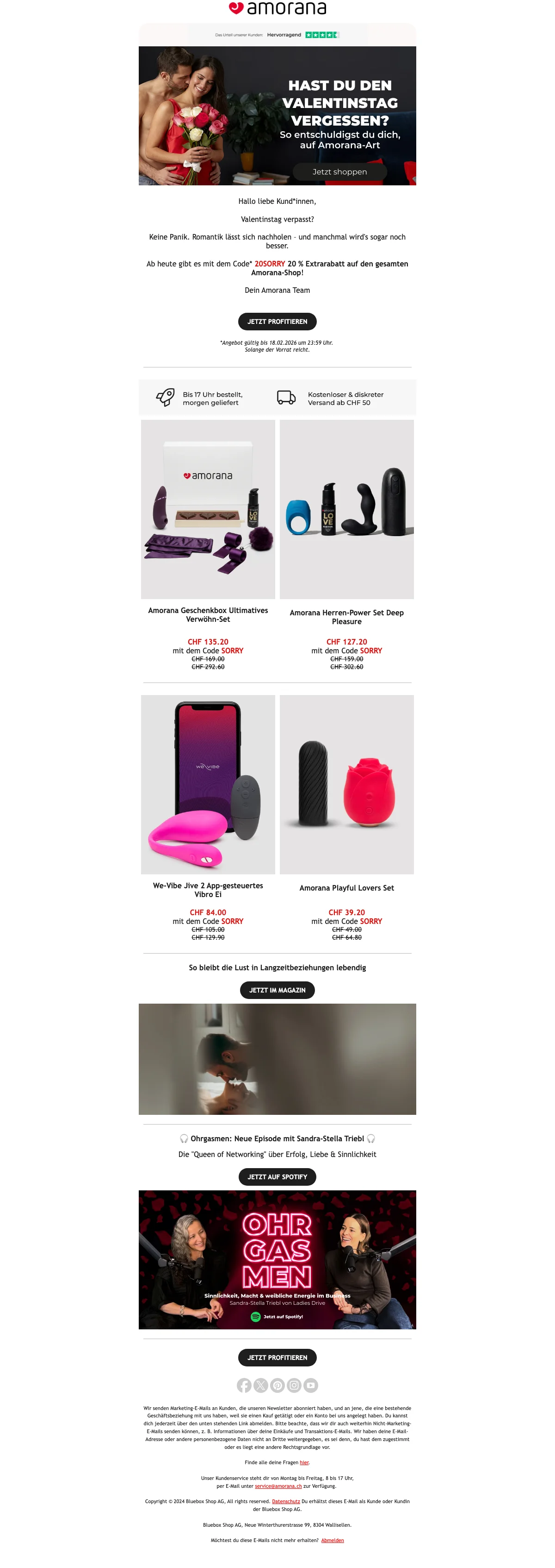 Amorana valentinstag 20% rabatt auf produkte, gratis versand ab CHF 50