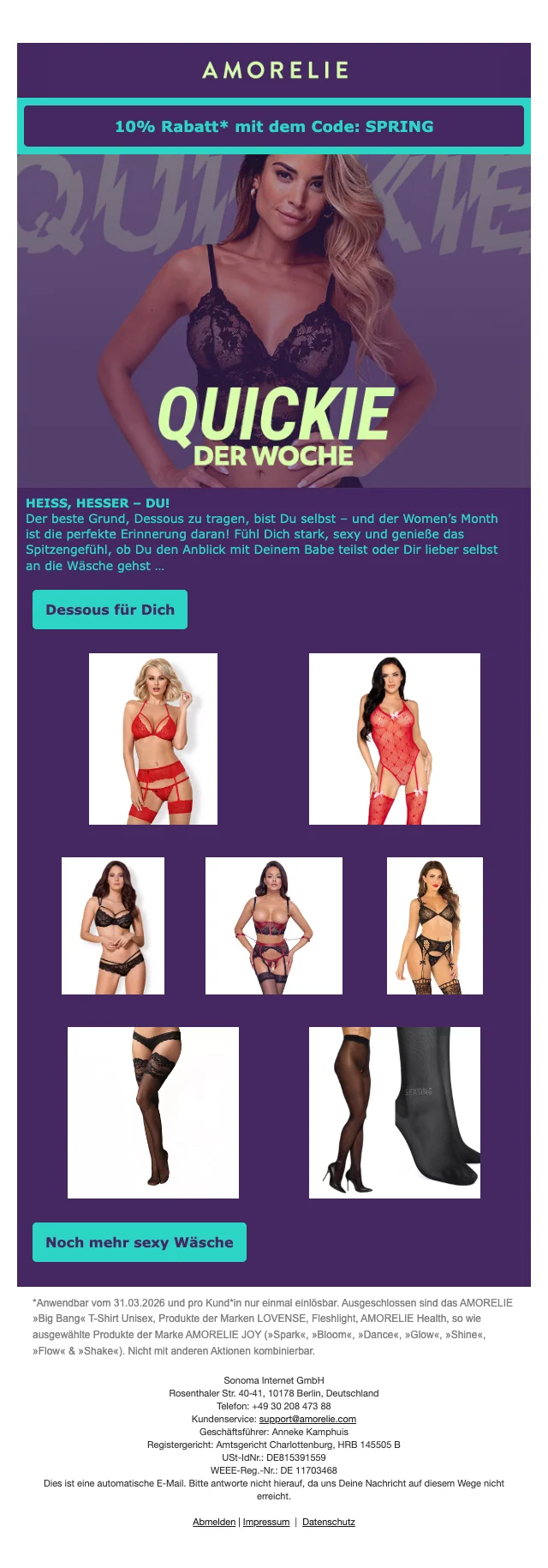 Amorelie Gutschein: CHF 10.- Rabatt bei Newsletteranmeldung geschenkt