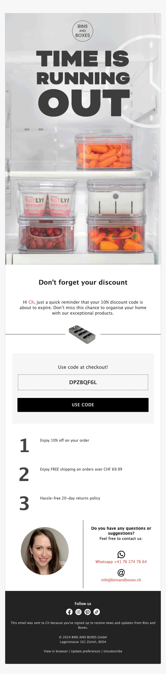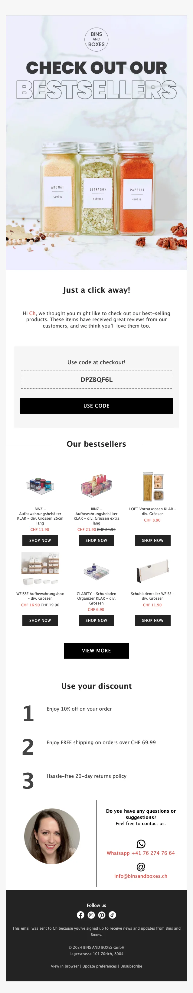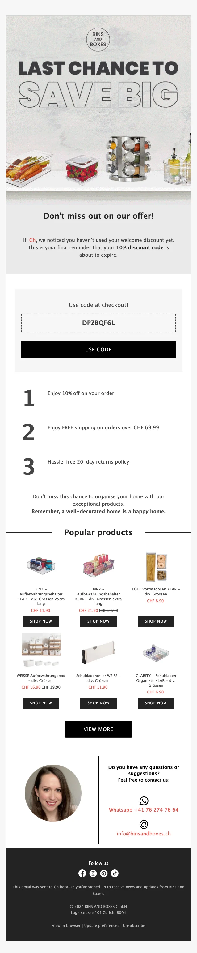 Melde dich jetzt an und erhalte 15 % Rabatt auf deinen ersten Einkauf bei BINS AND BOXES. Nutze die Chance, dein Zuhause mit stilvollen und funktionalen Aufbewahrungslösungen zu organisieren!
