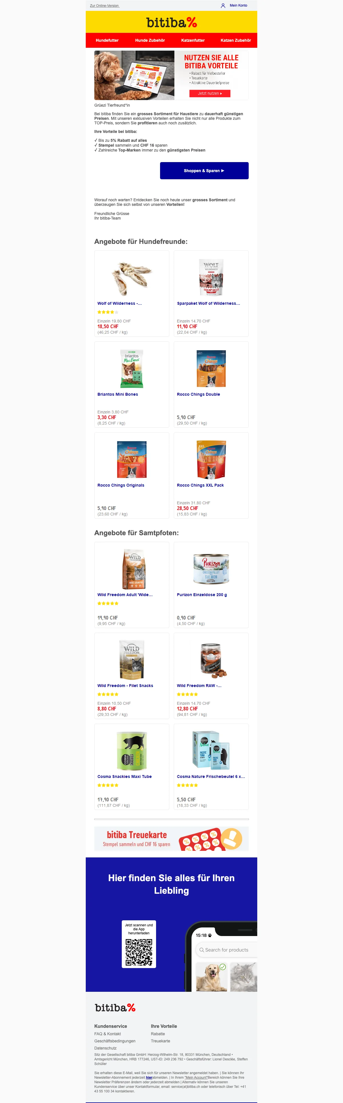 Bitiba 5% Rabatt auf alles – Stempelkarte sammelt CHF 16