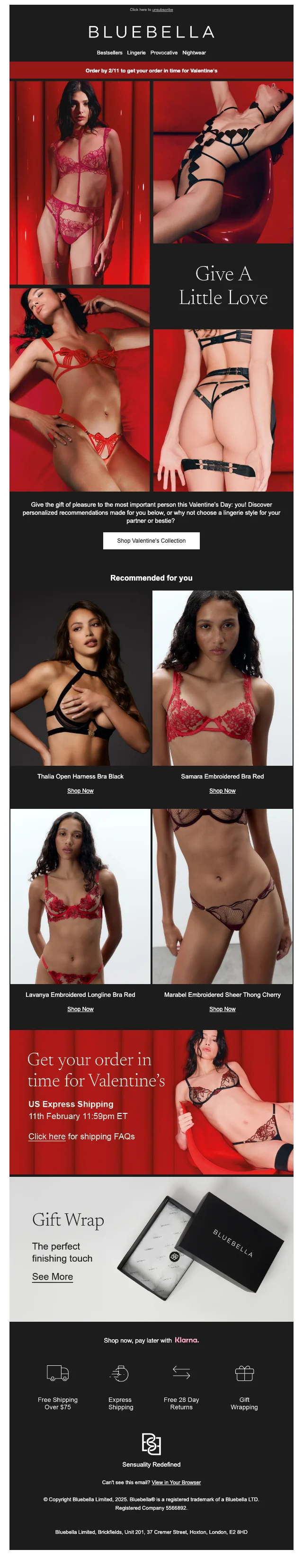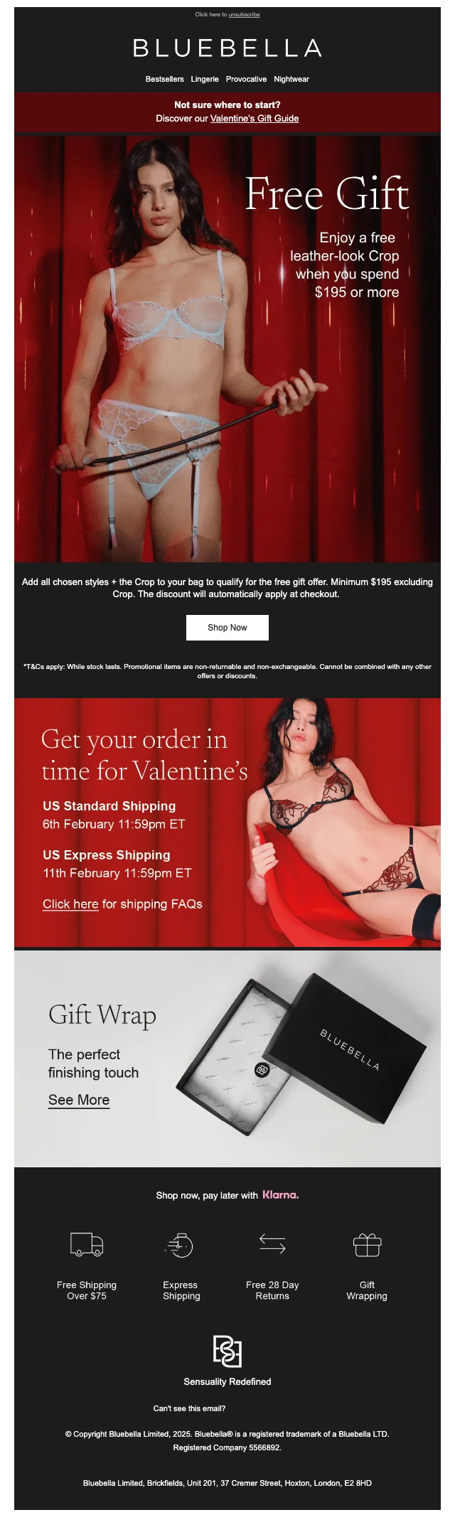 Bluebella valentinstag: gratis crop ab $195 geschenk
