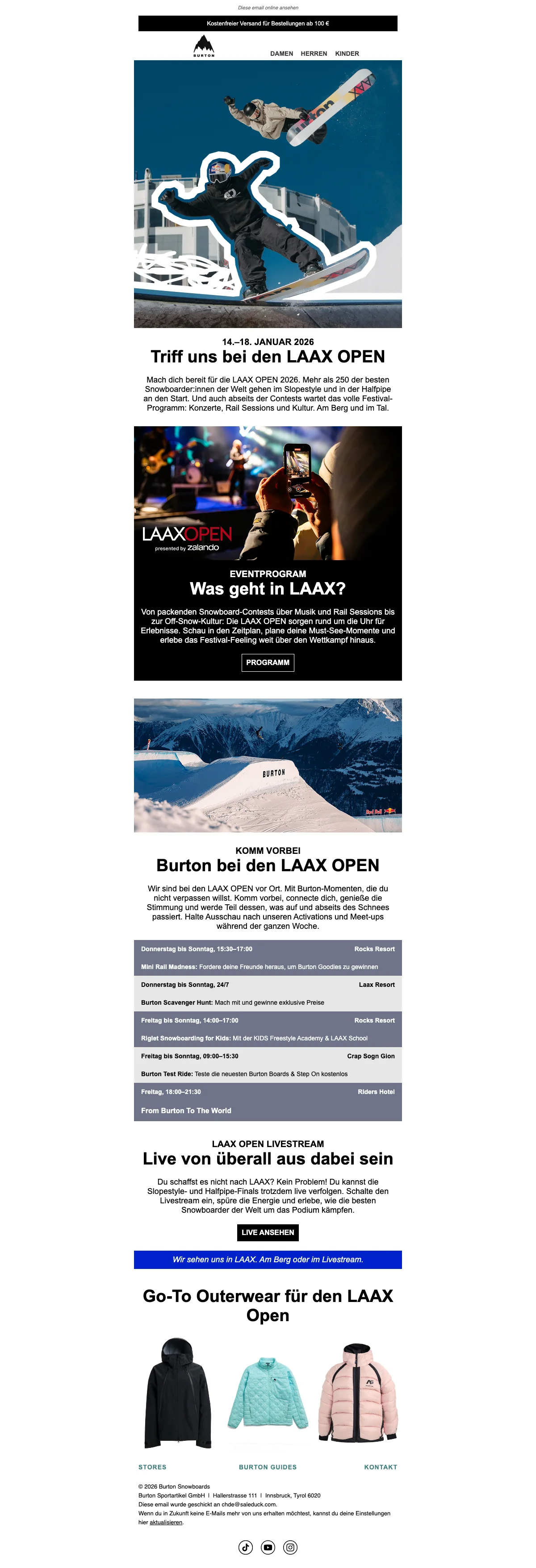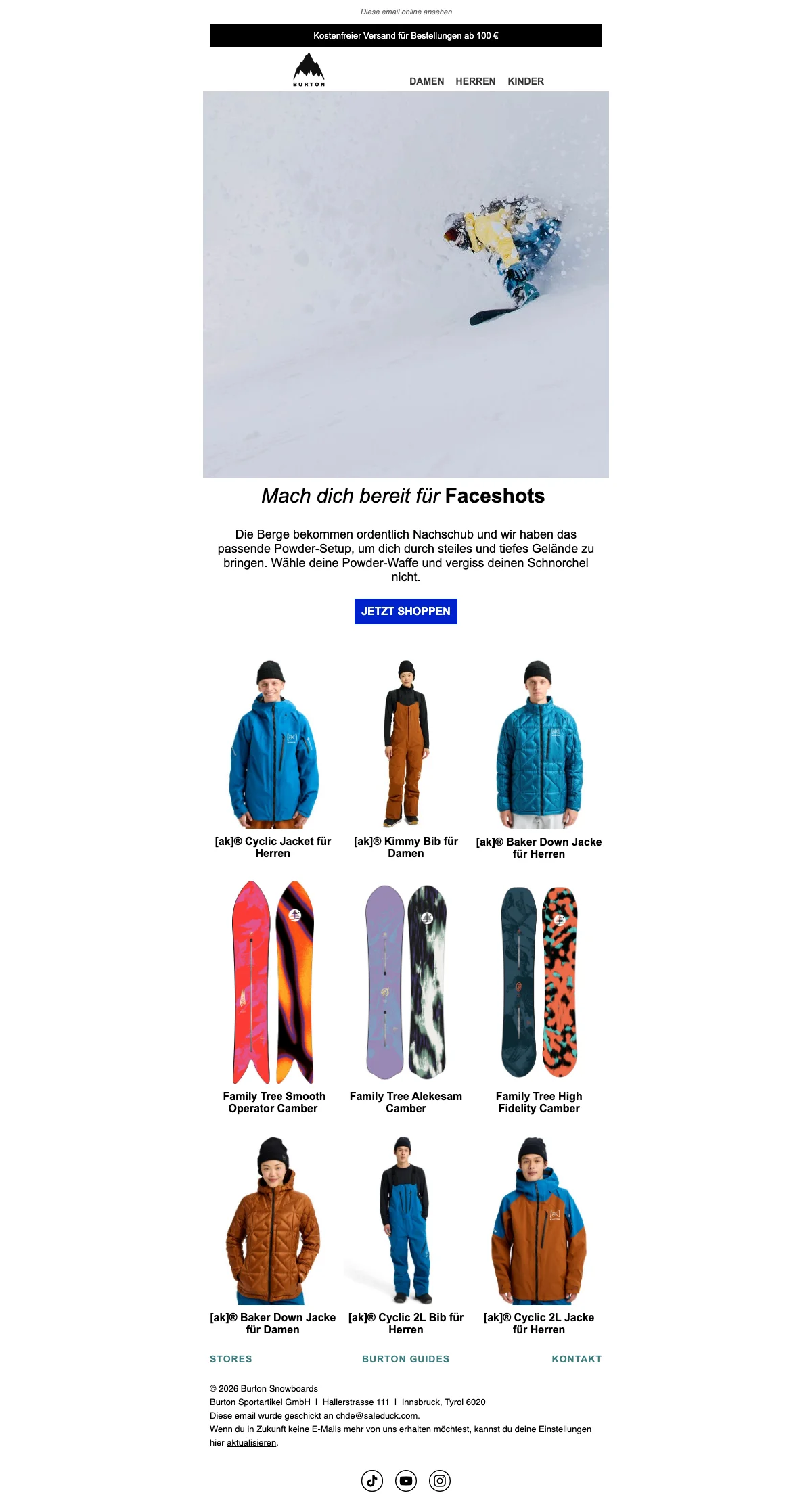 Genieße kostenfreien Versand, wenn du für mindestens 100 € einkaufst. Es ist die perfekte Gelegenheit, deine Ausrüstung für den Terrain Park aufzustocken und gleichzeitig Versandkosten zu sparen. Mach dich bereit für den Winterspaß!
