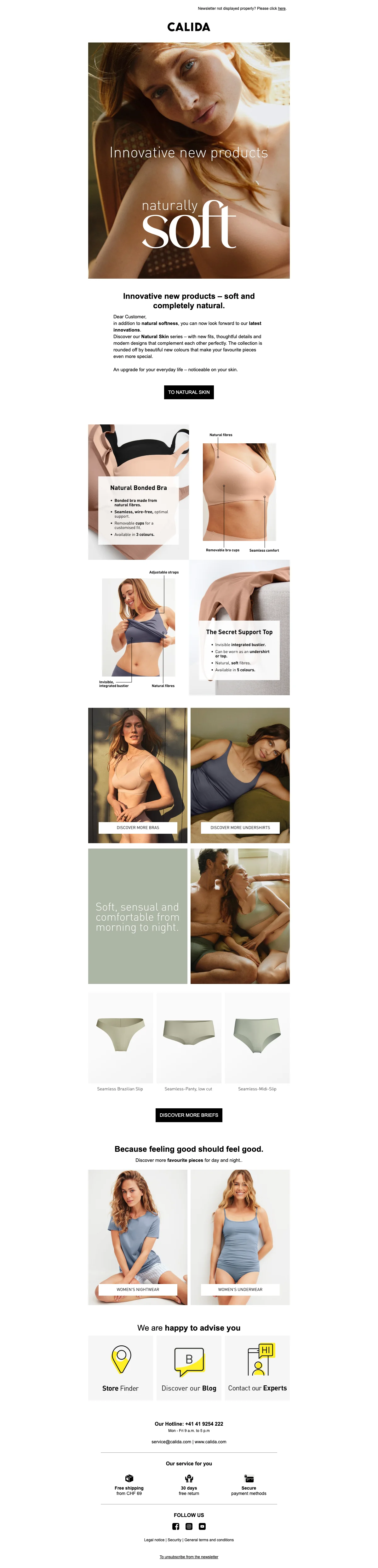 Auf der CALIDA Webseite kannst du nicht nur die gesamte Produktpalette von CALIDA finden, sondern auch viel Inspiration, Informationen zu den verschiedenen Materialien sowie Neuigkeiten und Tipps. In der Ratgeber-Sektion findest du, zum Beispiel, Auskunft darüber, welches Material am besten für welchen Hauttypen geeignet ist und wie man die Unterwäsche pflegt. Frauen finden hier auch Tipps dazu, wie man den besten BH auswählt. Da es bei BHs sehr wichtig ist, die passende Größe und den richtigen Schnitt auszuwählen, können sich Frauen bei CALIDA den BH Ratgeber zur Hilfe nehmen.