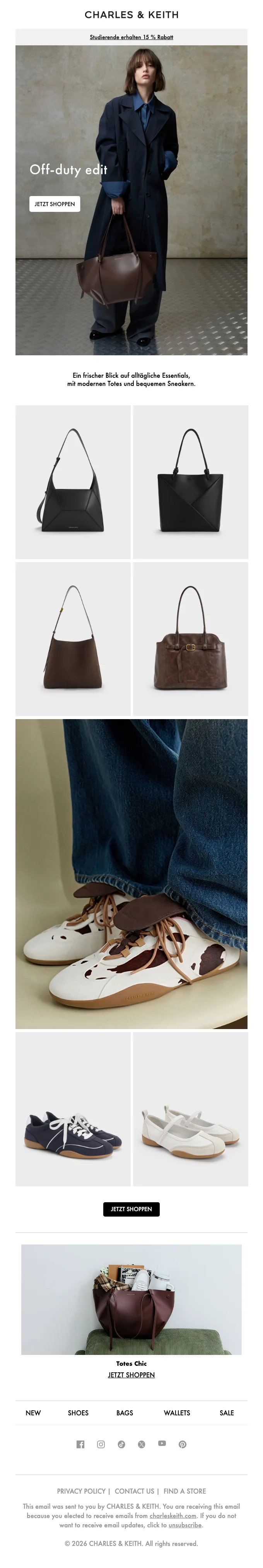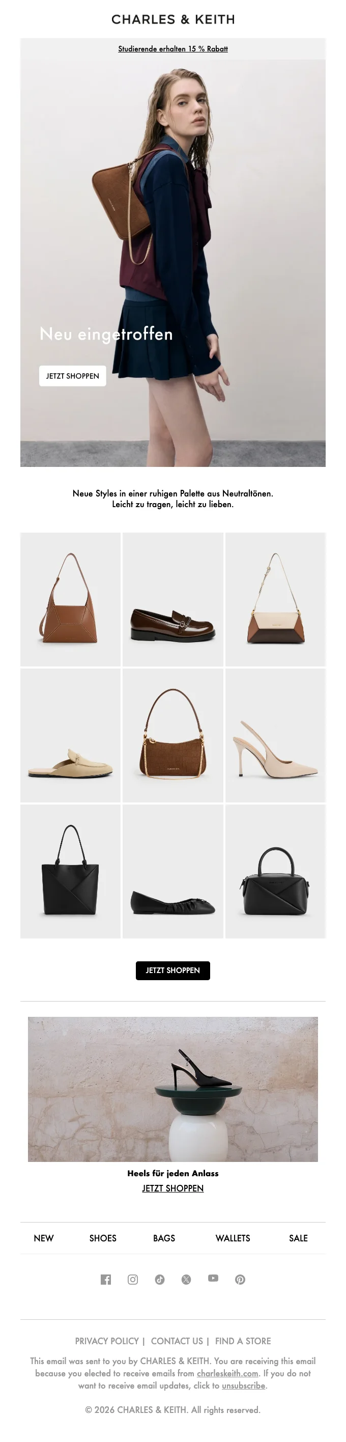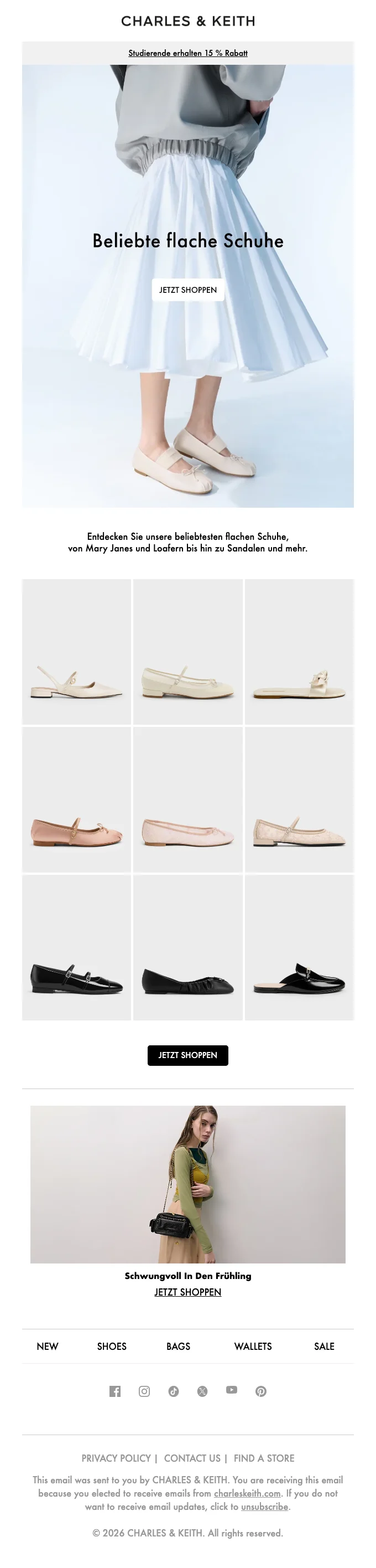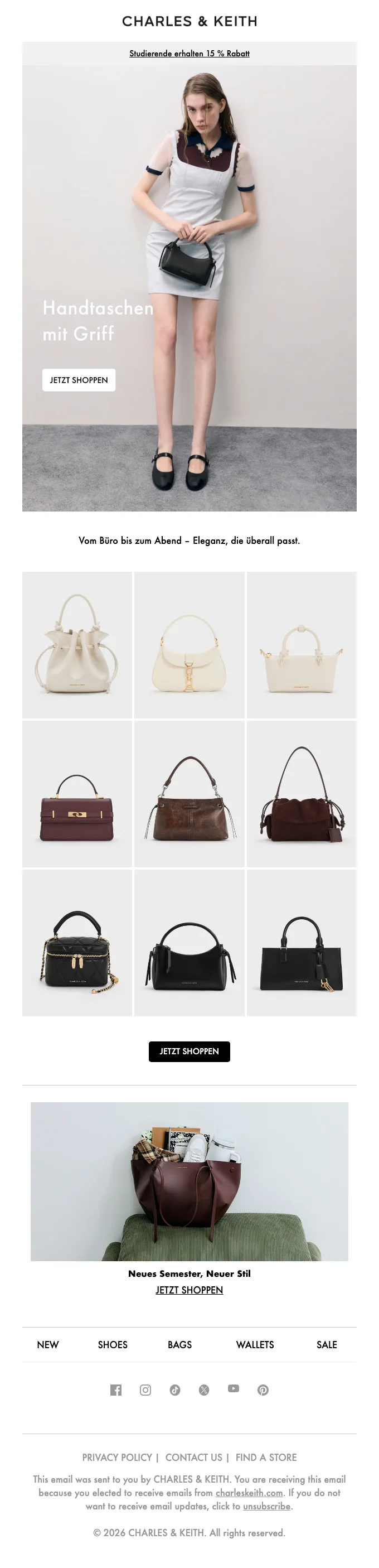 Charles Keith studentenrabatt 15% Rabatt für Studierende