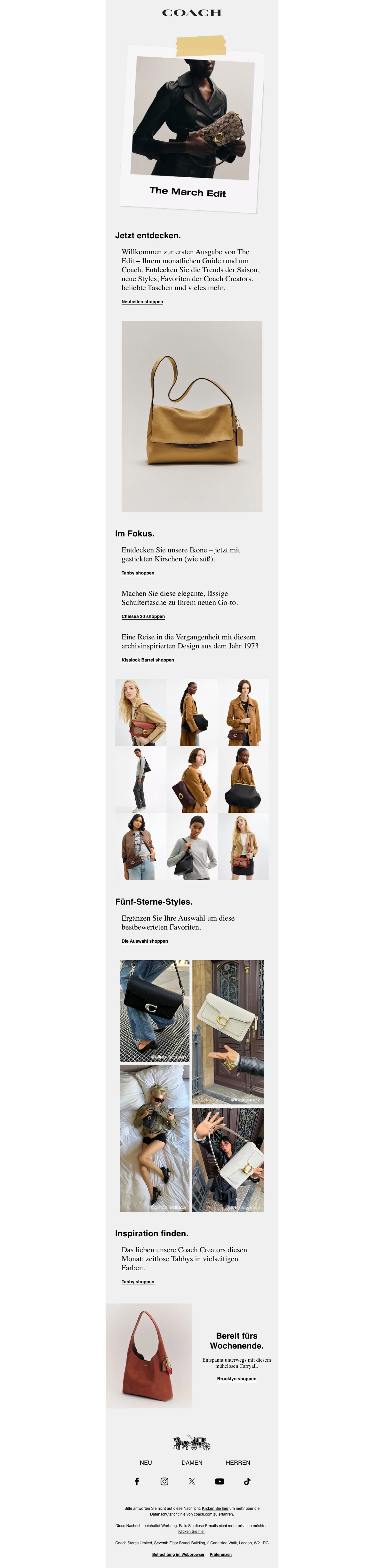 Im Coach Outlet erwarten dich Rabatte von bis zu 50% auf Taschen und mehr. Schnapp dir dein Lieblingsstück zum Schnäppchenpreis!