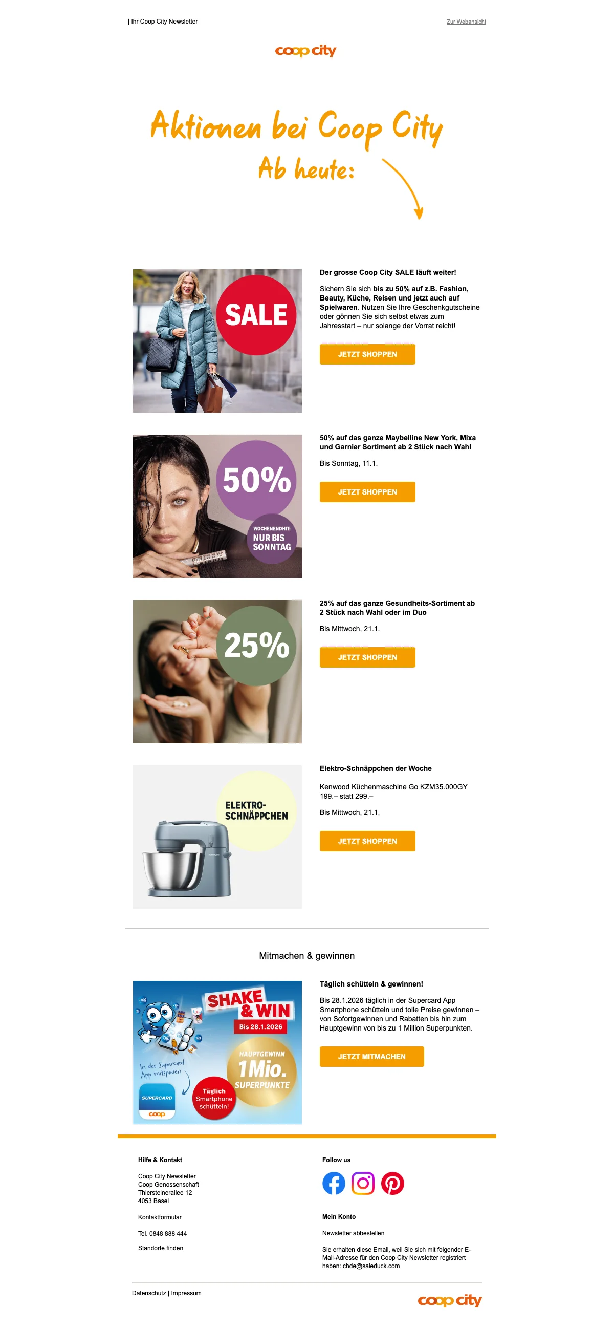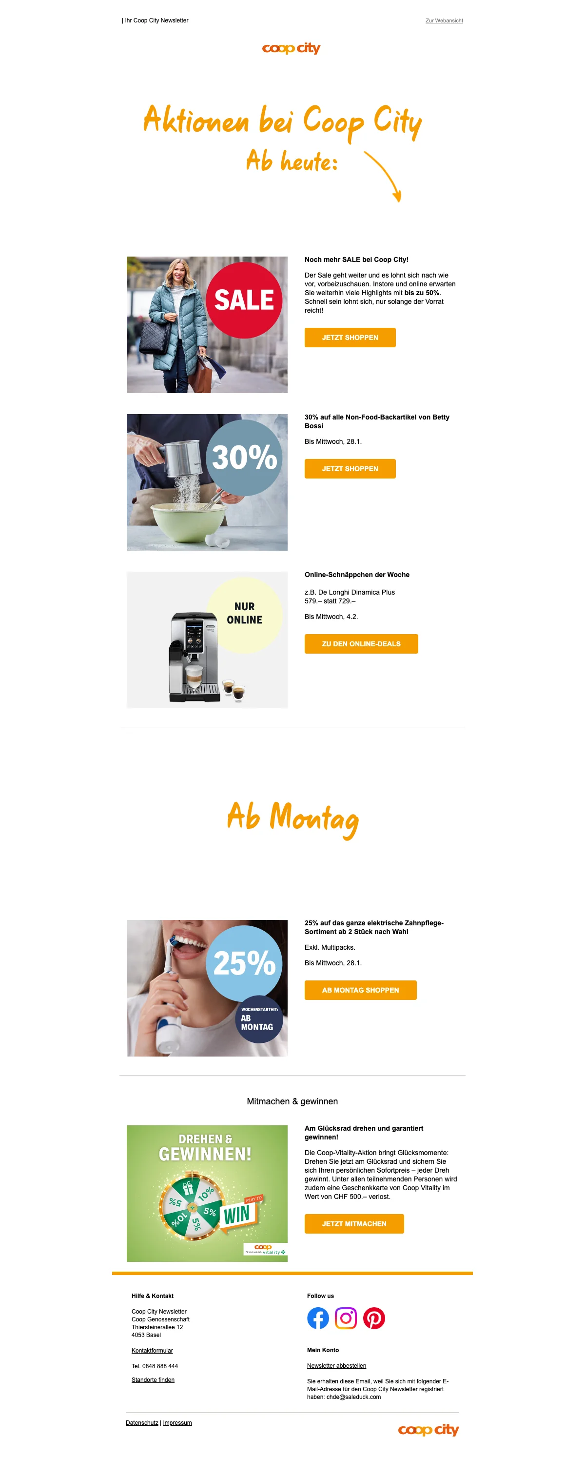 25% Rabatt auf das gesamte Schönheits-Sortiment ab 2 Artikeln; elektrische Zahnpflege ist eingeschlossen. Ausgenommen sind Coop Prix Garantie, Babypflege, Damenhygiene, Taschentücher und Beauty-Elektrogeräte.