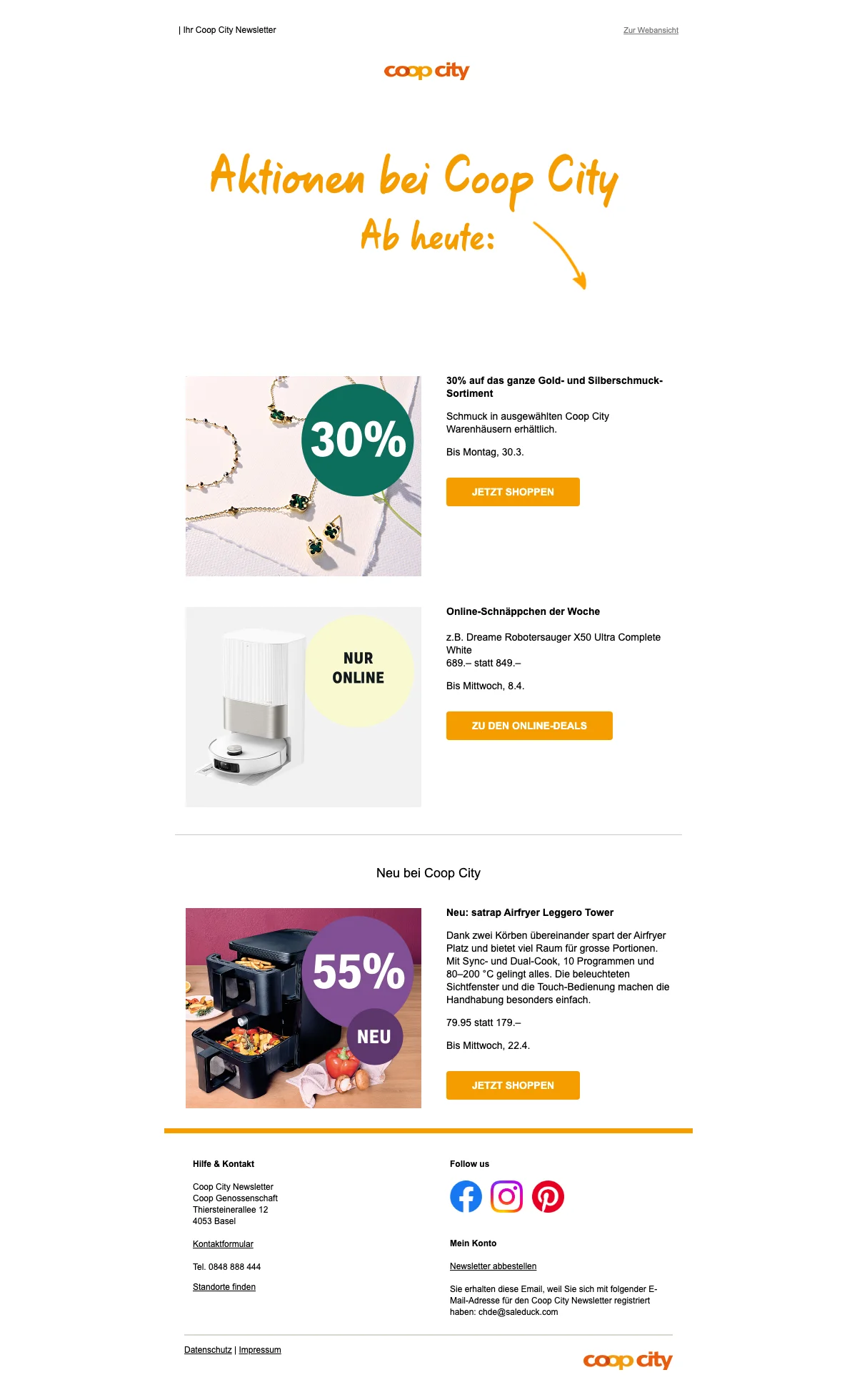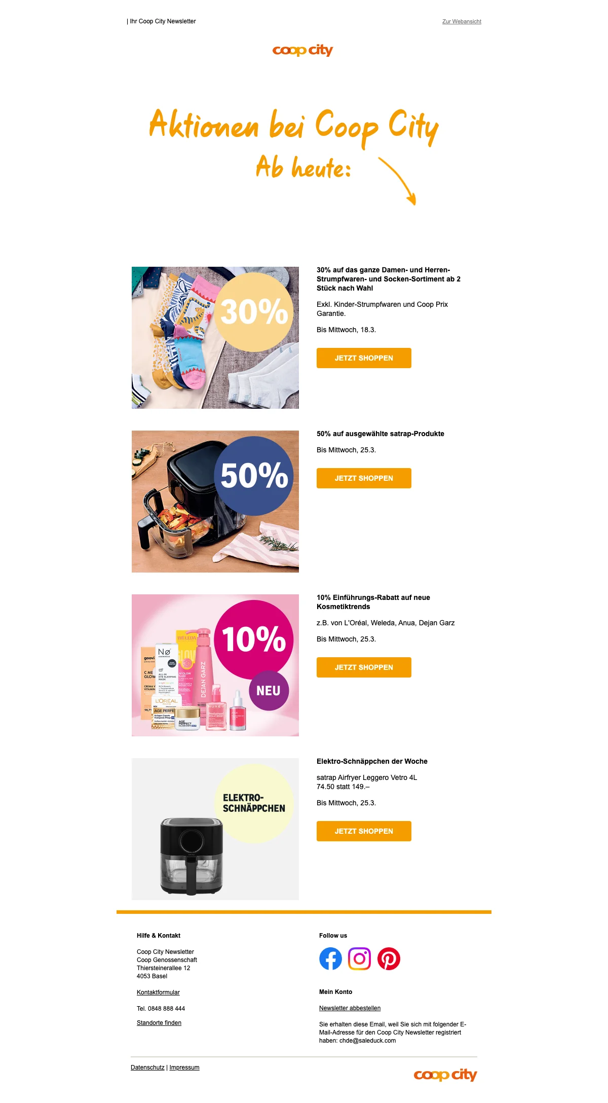 Saleduck ist ein unabhängiger, werbefinanzierter Gutschein-Vergleichsdienst. Die Angebote auf dieser Website stammen von Unternehmen, von denen Saleduck eine Vergütung erhält. Diese Vergütung kann sich darauf auswirken, wie und wo Gutscheine oder Produkte auf dieser Website erscheinen, einschließlich beispielsweise der Reihenfolge, in der sie innerhalb der Auflistungskategorien erscheinen. Saleduck hat direkte Verträge mit den von uns beworbenen Werbetreibenden. Wir veröffentlichen nur Gutscheine, die wir direkt vom Werbetreibenden erhalten oder wenn der Werbetreibende selbst für sie wirbt. Wir veröffentlichen keine Gutscheine von anderen Websites erneut. Saleduck überprüft die Gutscheine manuell, bevor sie veröffentlicht werden.