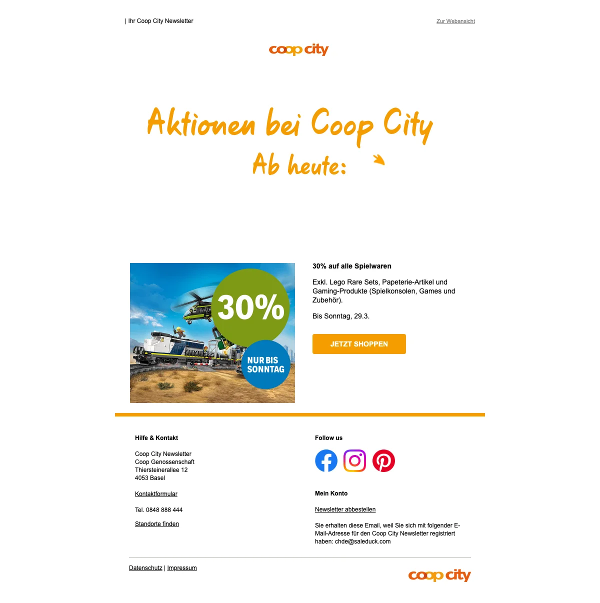 Coop City 30 % Rabatt auf Spielwaren sichern