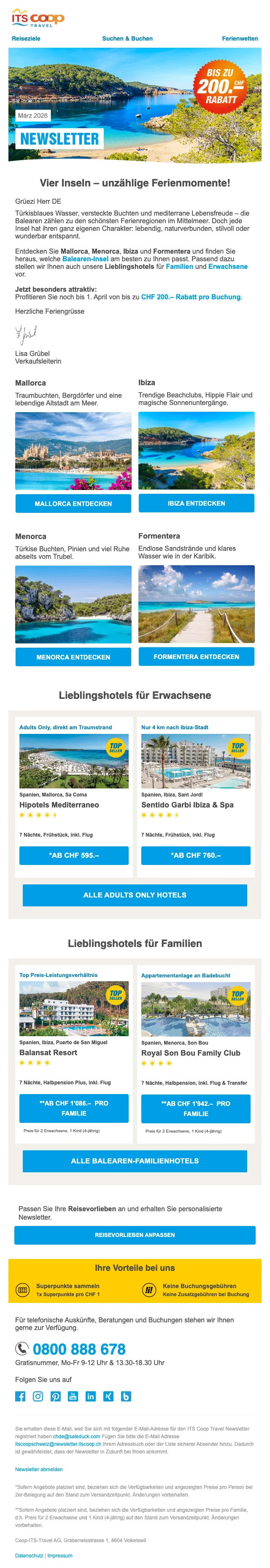 | FERIEN50 | ITS Coop Travel Schweiz: Rabatt von CHF 50.- im März für dich |
