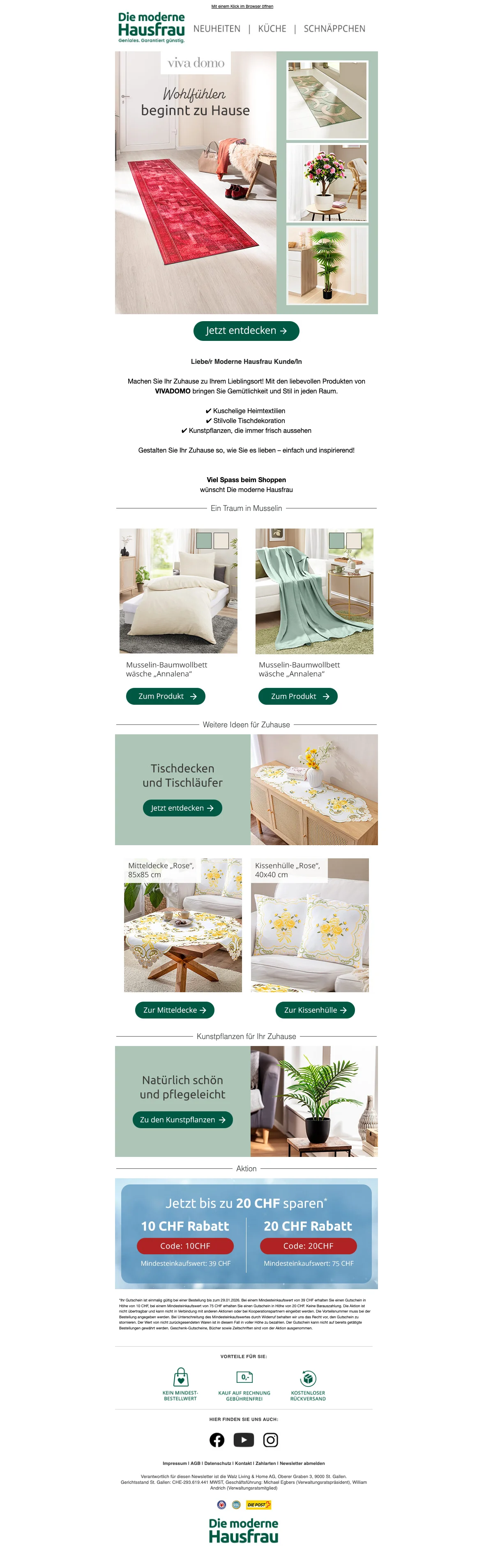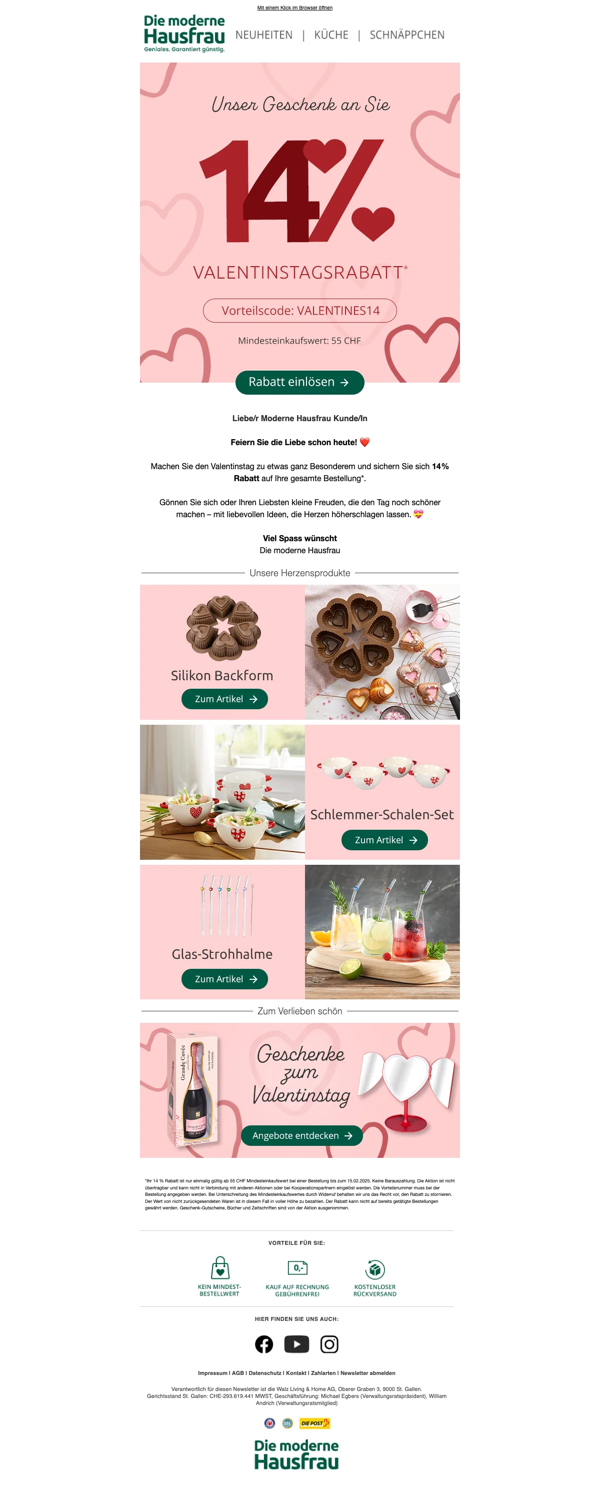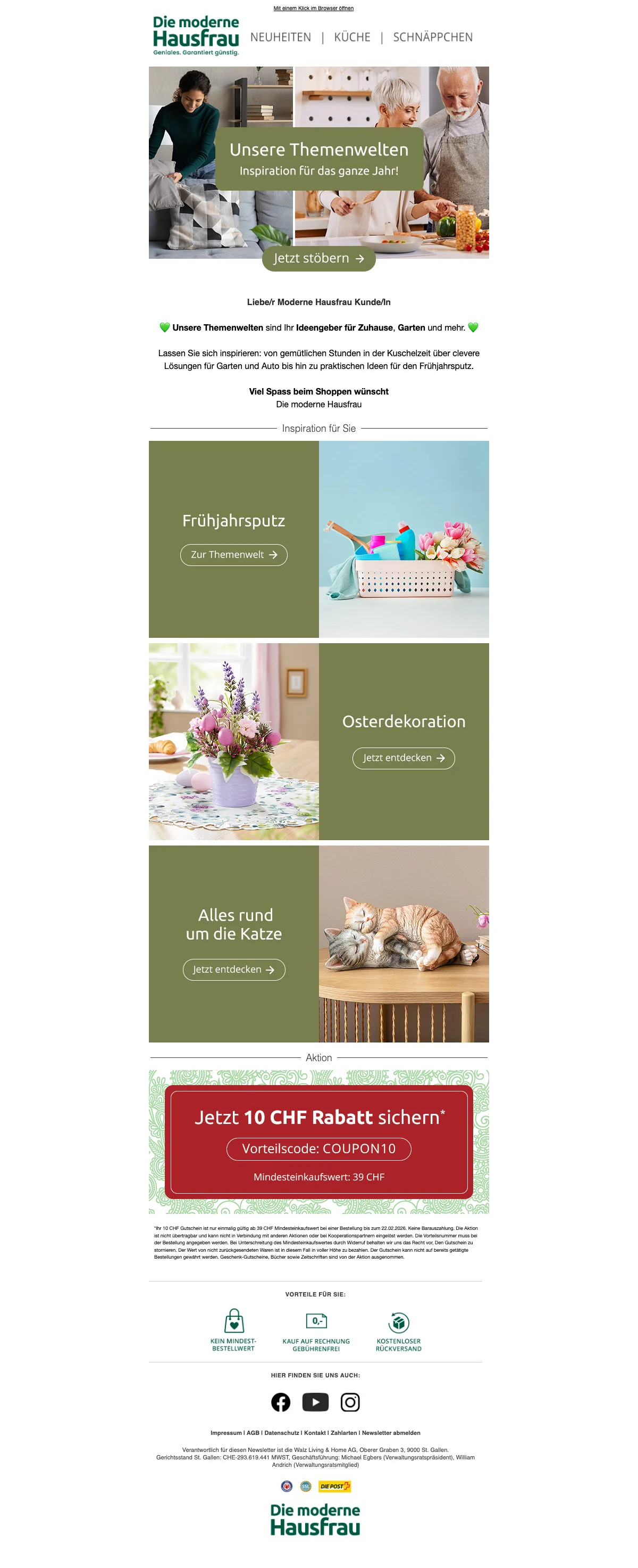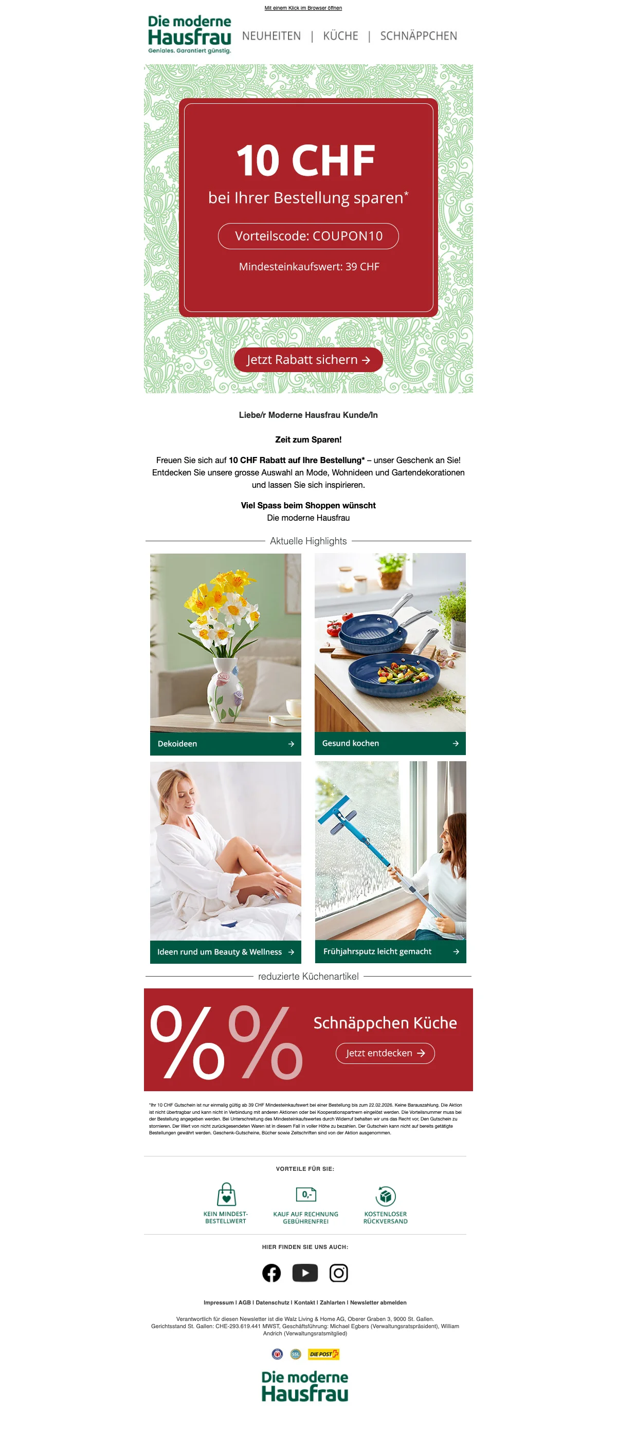 Die moderne Hausfrau Vorteilscode: 15 % Rabatt auf Bestellungen über 55 CHF im Mai!