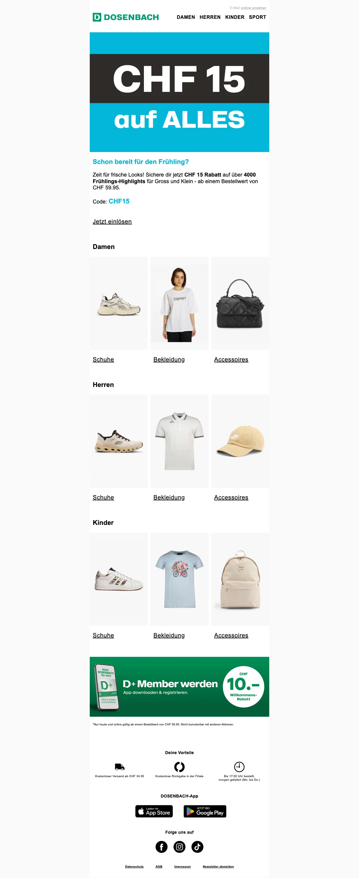 Dosenbach Markenartikel 20 % Rabatt auf Schuhe, Bekleidung und Accessoires