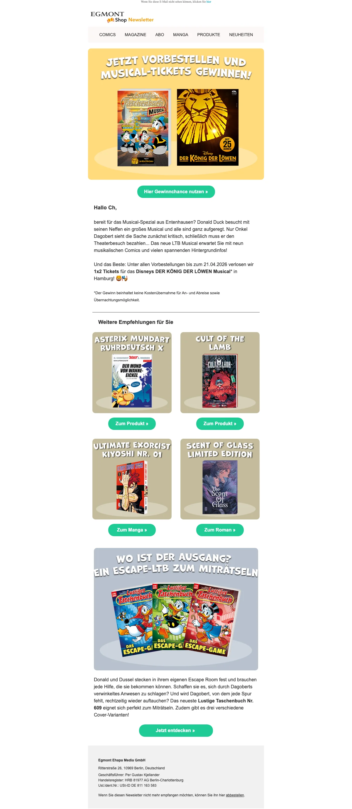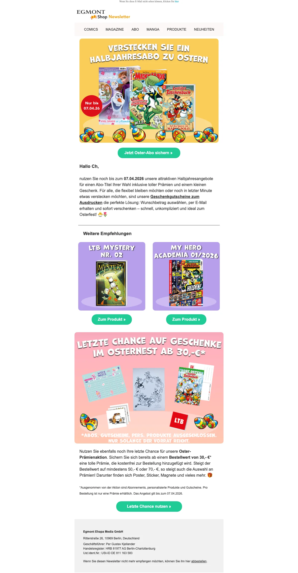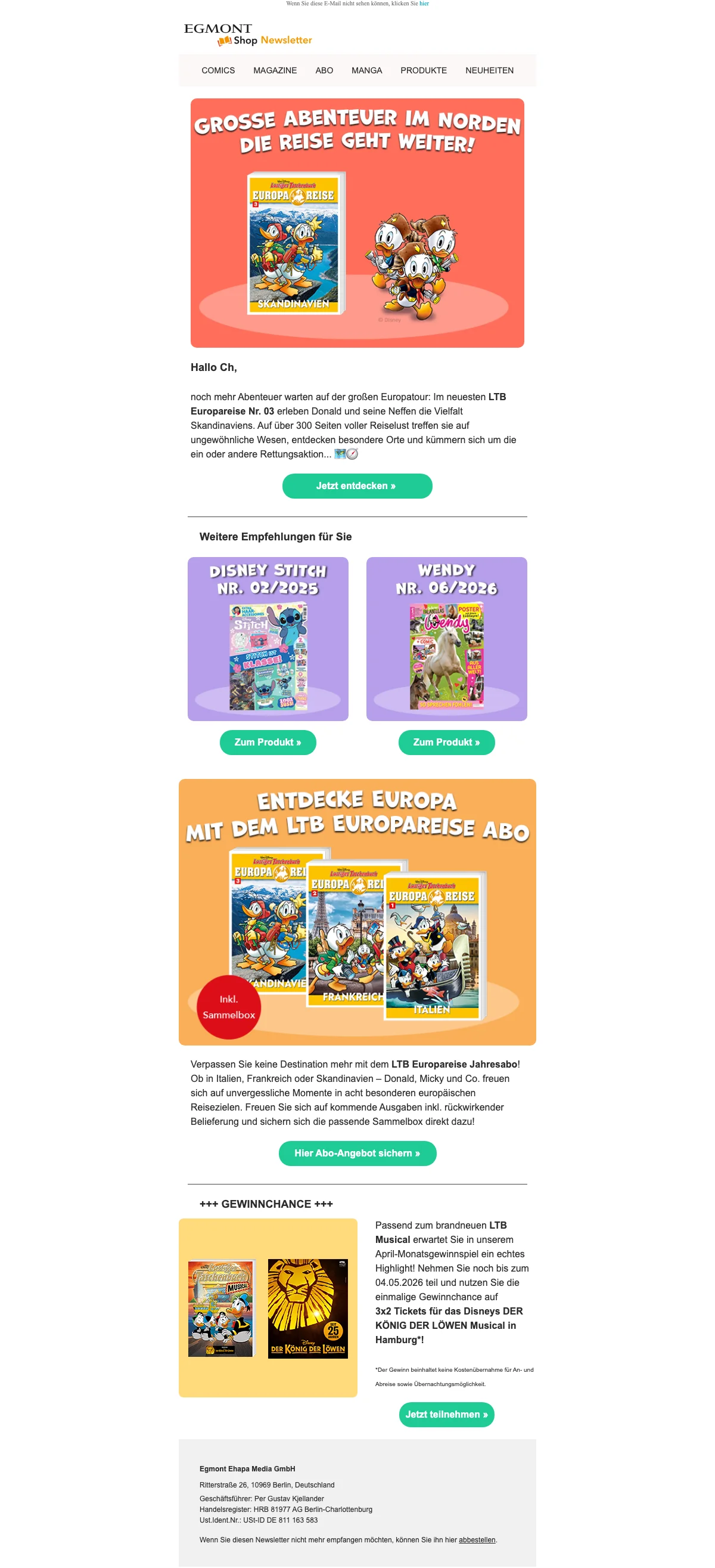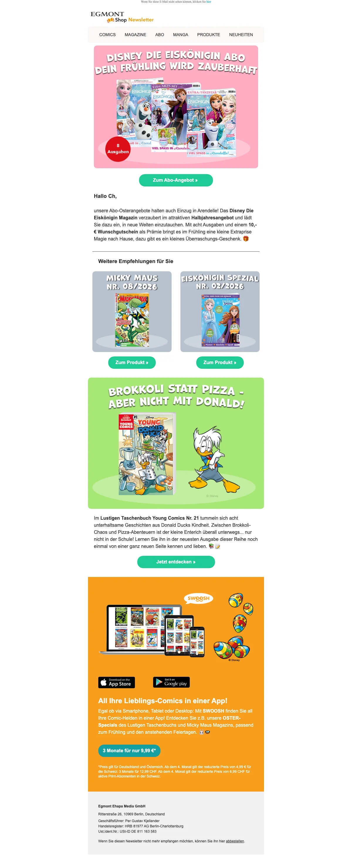 Egmont Shop Micky Maus Jahresabo Rabatt: spare €25