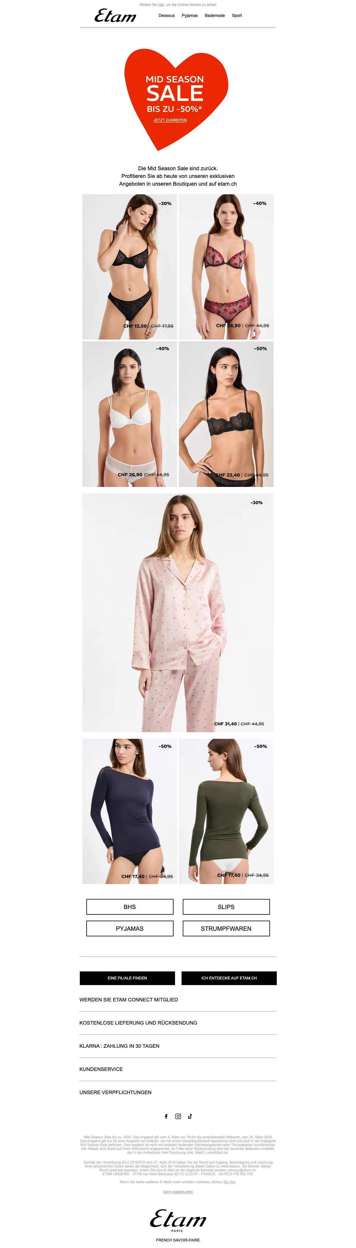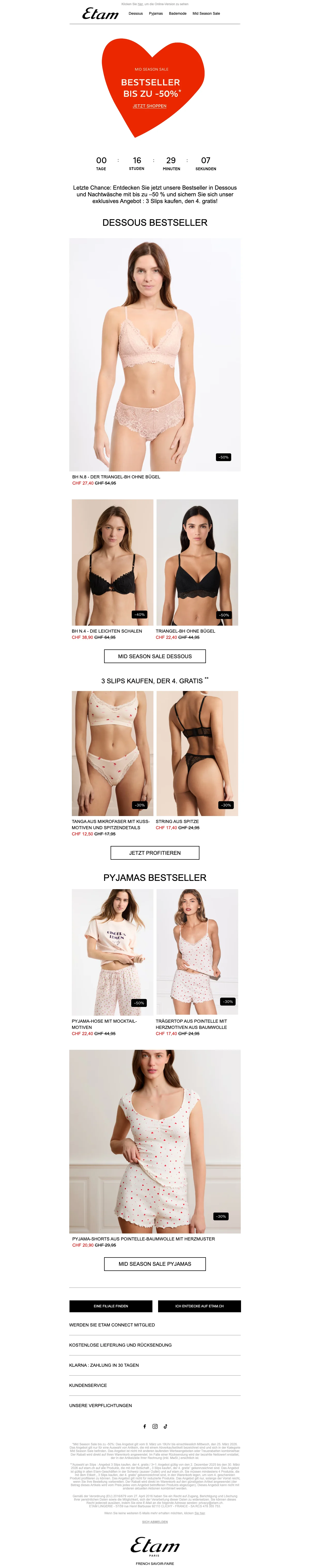 Etam Lingerie Angebot: Zweiter BH ab CHF 34,95
