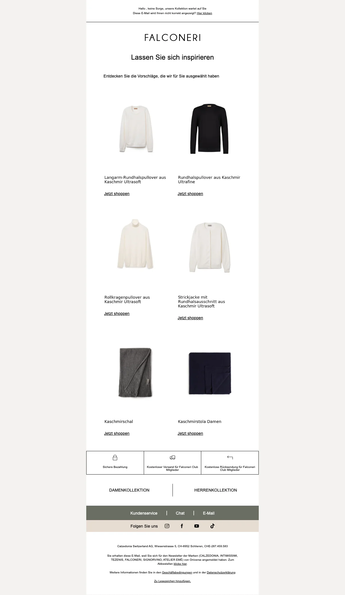 Falconeri Club 20 % Rabatt für alle Kaschmir-Kunden