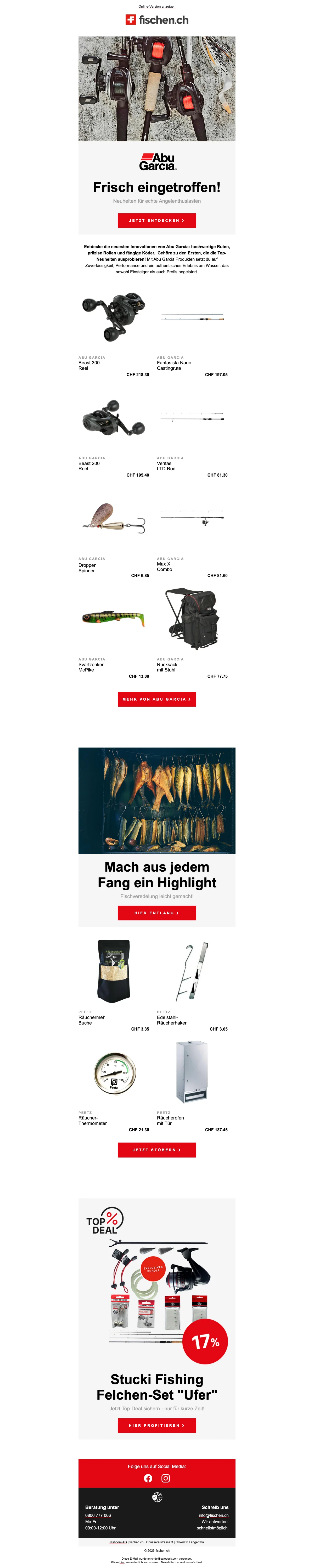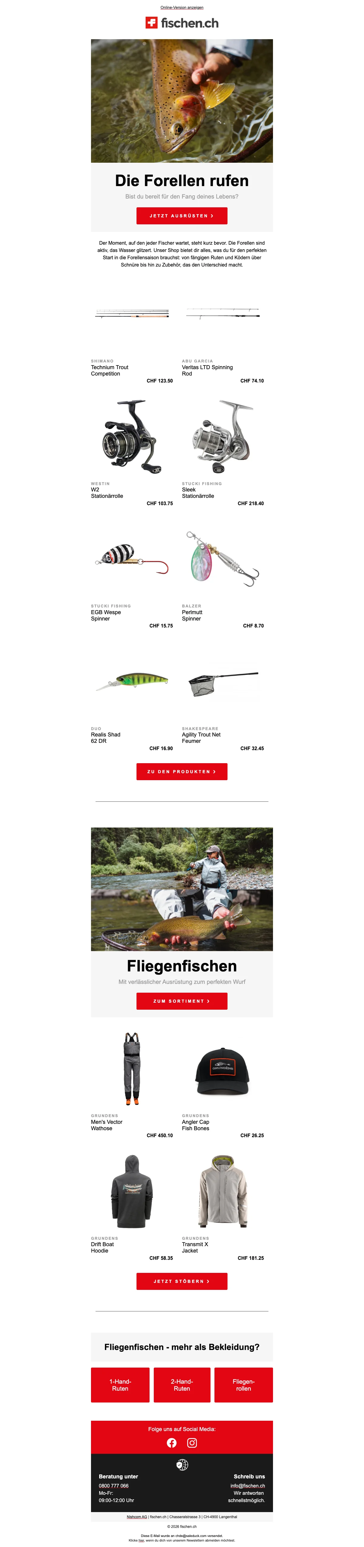 fischen ch Gutscheincode: Erhalte CHF 10.- Rabatt bei Newsletter-Anmeldung