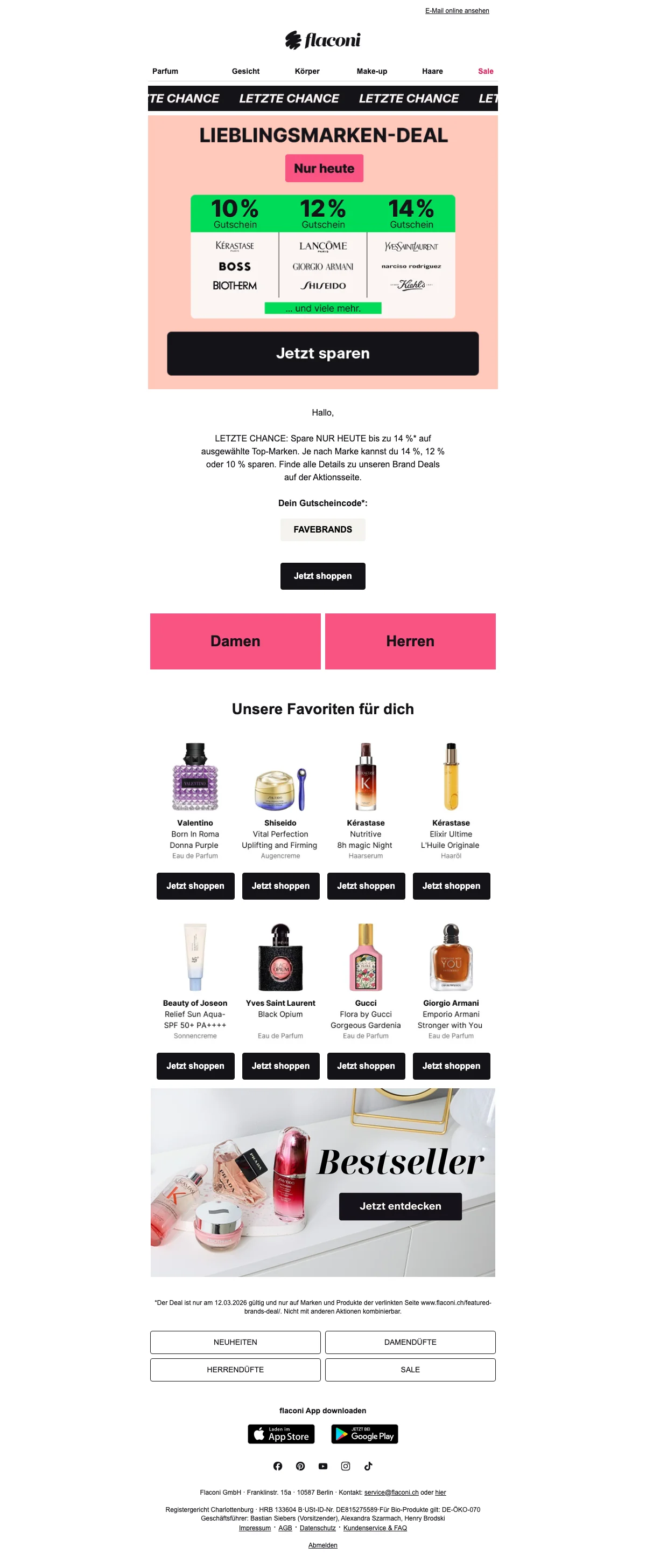 Flaconi gutschein 12 % Rabatt ab 49 CHF auf parfüm kosmetik