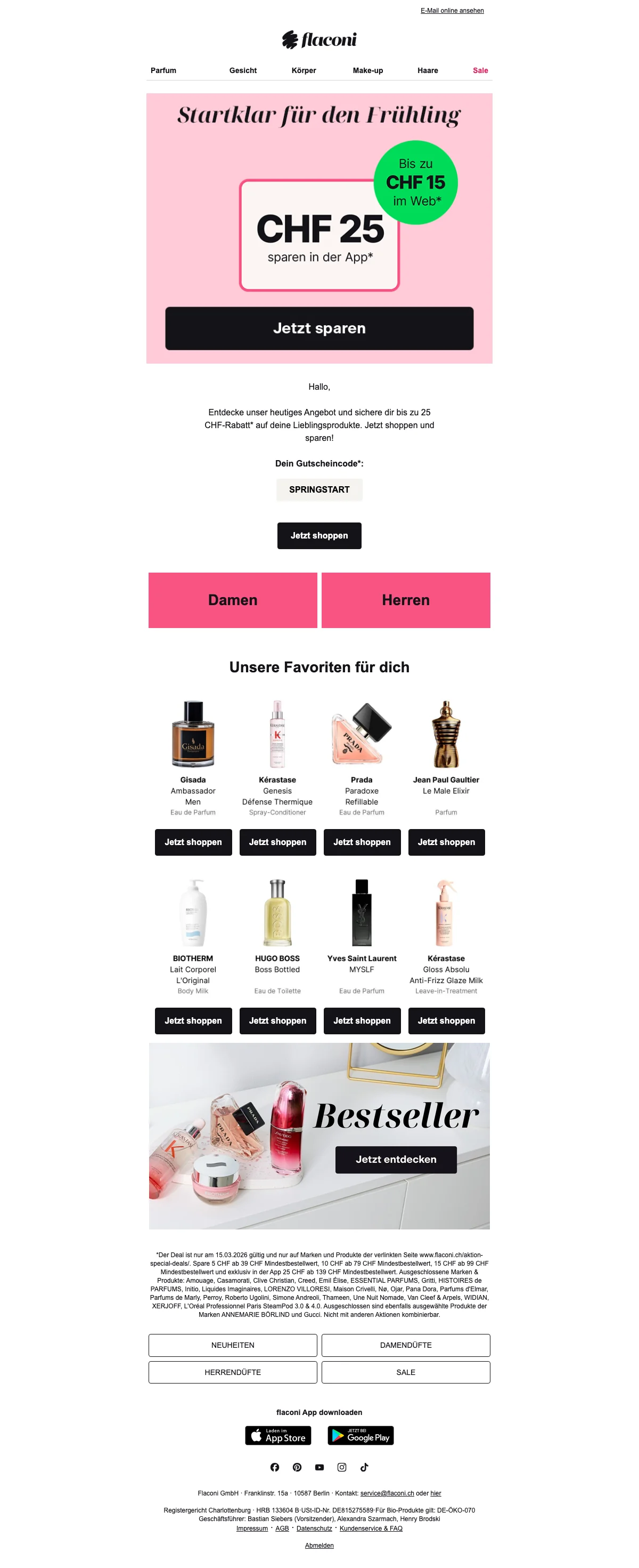 Sichere dir 12 % Rabatt bei Bestellungen ab 49 CHF auf ausgewählte Beauty- und Parfümartikel. Gilt nicht für bestimmte Luxusmarken und ist nicht mit anderen Aktionen kombinierbar. Ideal, um Pflege- und Duftfavoriten günstiger zu probieren.