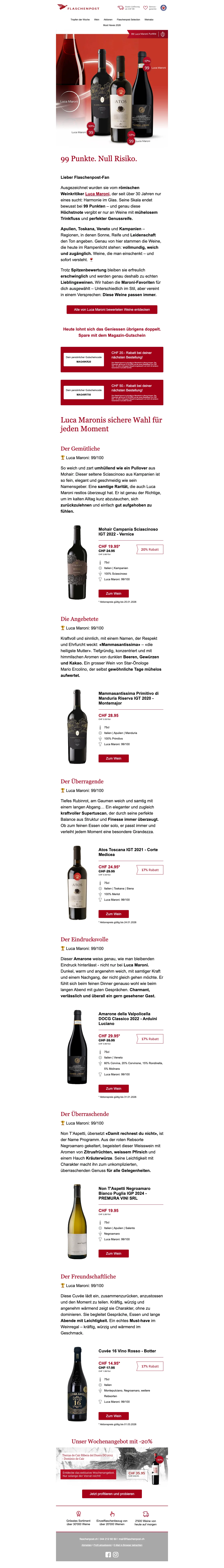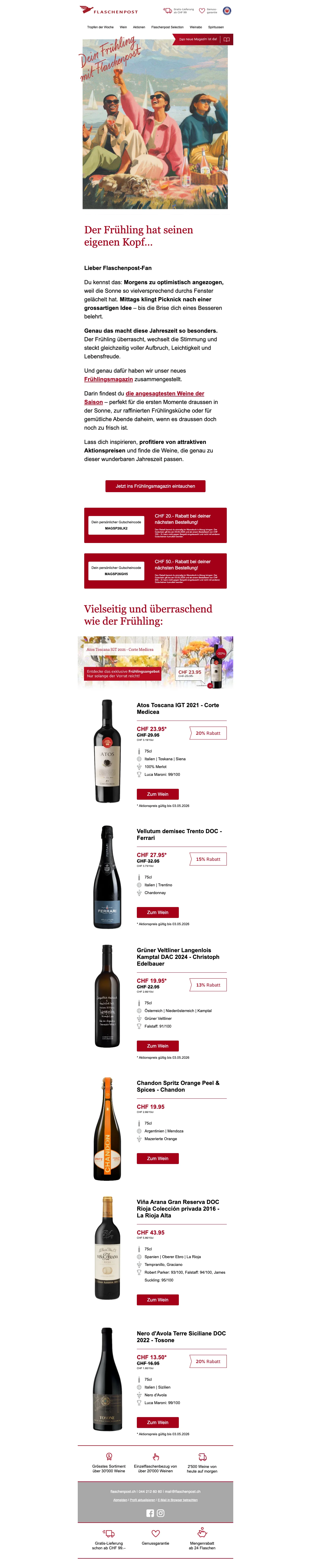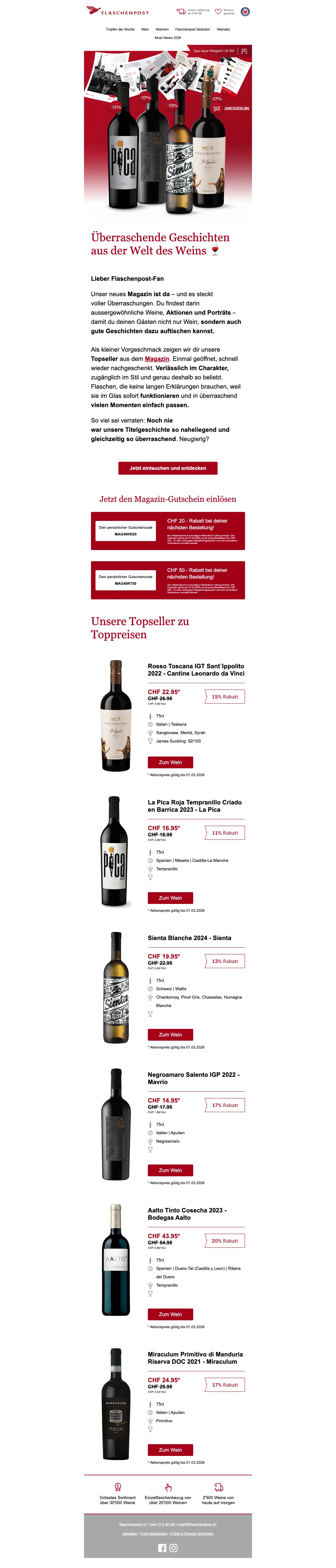 Eine Flaschenpost am Strand finden ist mit Sicherheit eine schöne Sache - wesentlich beliebter ist dagegen jedoch das Trinken eines schönen Gläschens Wein! Das dachten sich wohl auch die zwei Firmengründer Renzo Schweri und Dominic Blaesi damals, als sie das Unternehmen hinter der Webseite auf die Beine stellten. Beide waren ein wenig genervt davon, wie schwierig und zeitaufwendig es vor 10 Jahren noch war, einen guten Weinversand online zu finden. Schnell und leicht sollte das Weinkaufen ihrer Meinung nach erfolgen und so ward die Idee geboren, eine Art Amazon für Weine online ins Leben zu rufen. Heute ist die AG mit Sitz in Zürich die größte virtuelle Weinhandlung in der ganzen Schweiz. Mehr als 15.000 Weine aller Art und von 70 der renommiertesten Schweizer Weinhändler kannst du heute mal so eben "im Vorbeigehen" auf der Website shoppen. Darauf erstmal ein Stösschen!