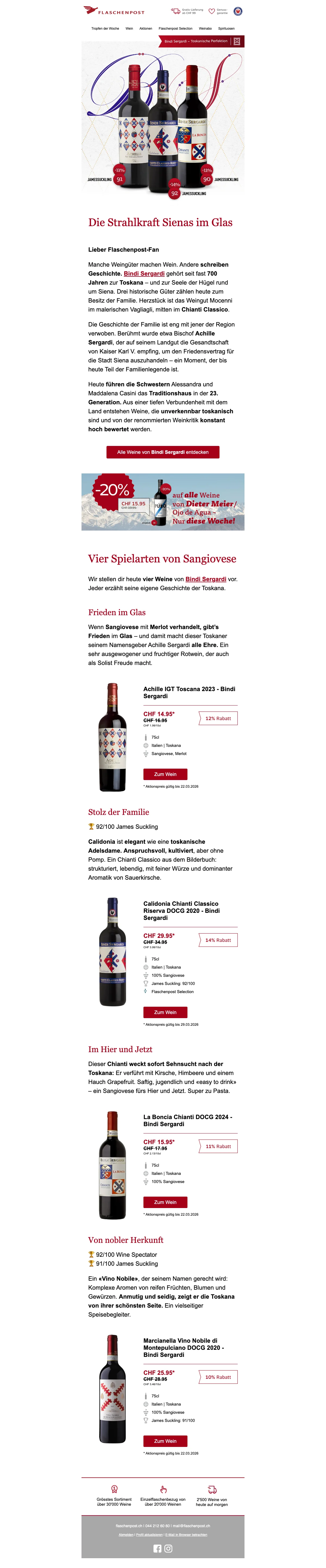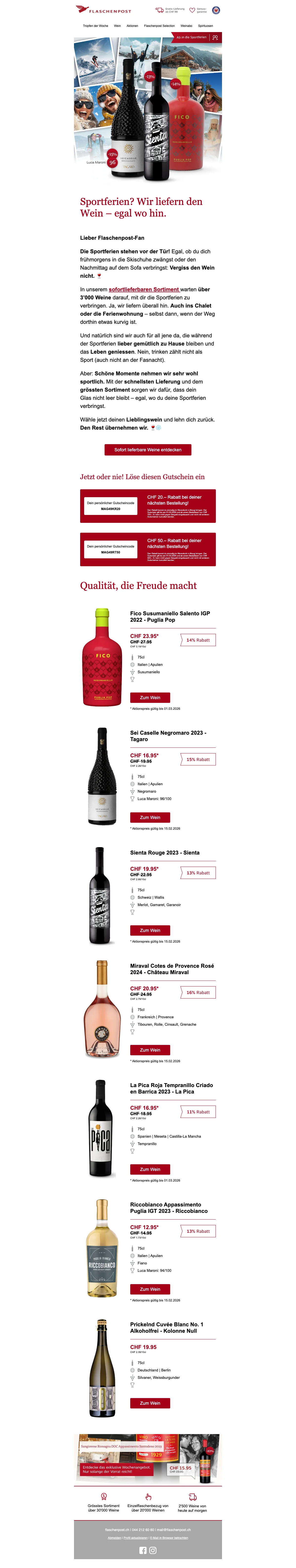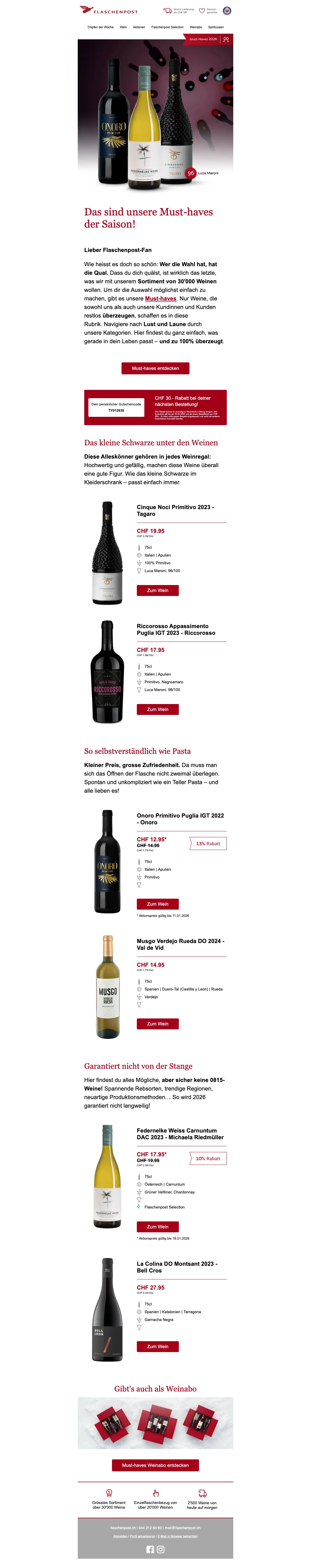 Eine Flaschenpost am Strand finden ist mit Sicherheit eine schöne Sache - wesentlich beliebter ist dagegen jedoch das Trinken eines schönen Gläschens Wein! Das dachten sich wohl auch die zwei Firmengründer Renzo Schweri und Dominic Blaesi damals, als sie das Unternehmen hinter der Webseite auf die Beine stellten. Beide waren ein wenig genervt davon, wie schwierig und zeitaufwendig es vor 10 Jahren noch war, einen guten Weinversand online zu finden. Schnell und leicht sollte das Weinkaufen ihrer Meinung nach erfolgen und so ward die Idee geboren, eine Art Amazon für Weine online ins Leben zu rufen. Heute ist die AG mit Sitz in Zürich die größte virtuelle Weinhandlung in der ganzen Schweiz. Mehr als 15.000 Weine aller Art und von 70 der renommiertesten Schweizer Weinhändler kannst du heute mal so eben "im Vorbeigehen" auf der Website shoppen. Darauf erstmal ein Stösschen!