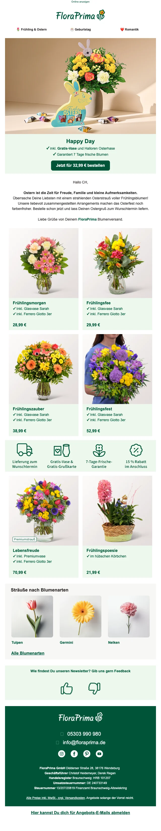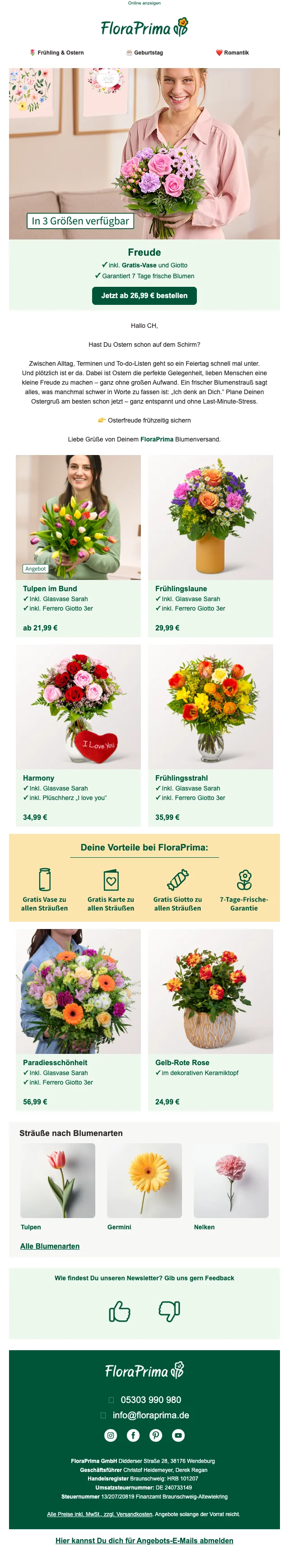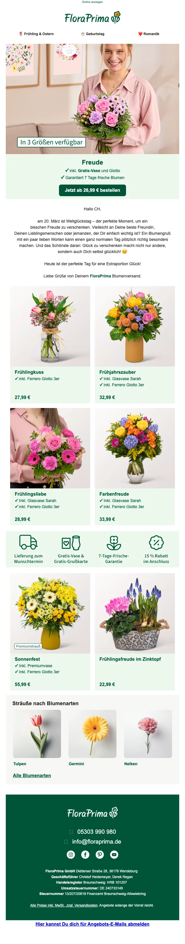 FloraPrima frühbucher frauentag 15% rabatt auf alle lieferungen