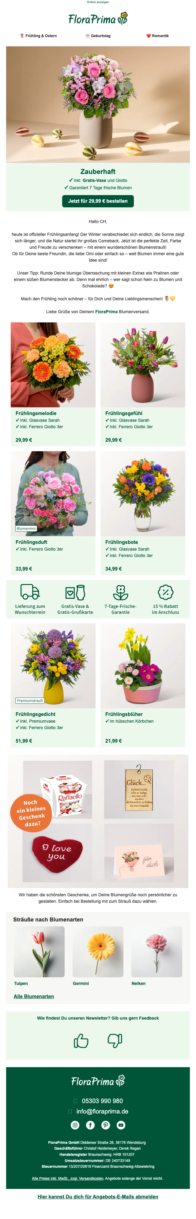 FloraPrima Gutscheincodes für die Schweiz - März 2026