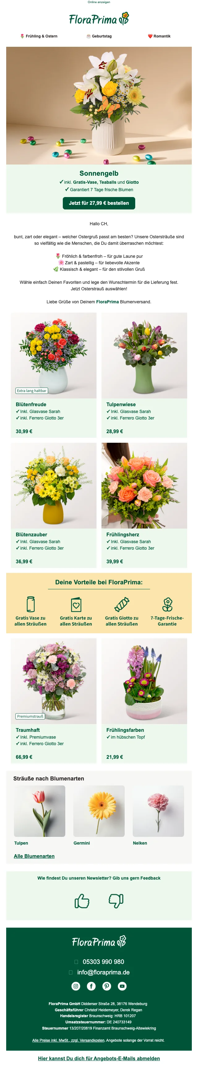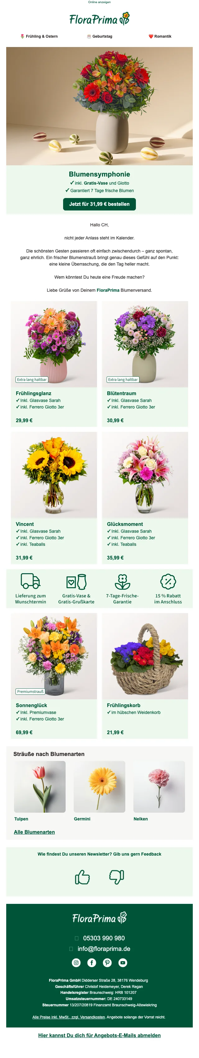 FloraPrima bietet eine breite Palette an Blumen und Geschenken für jeden Anlass.