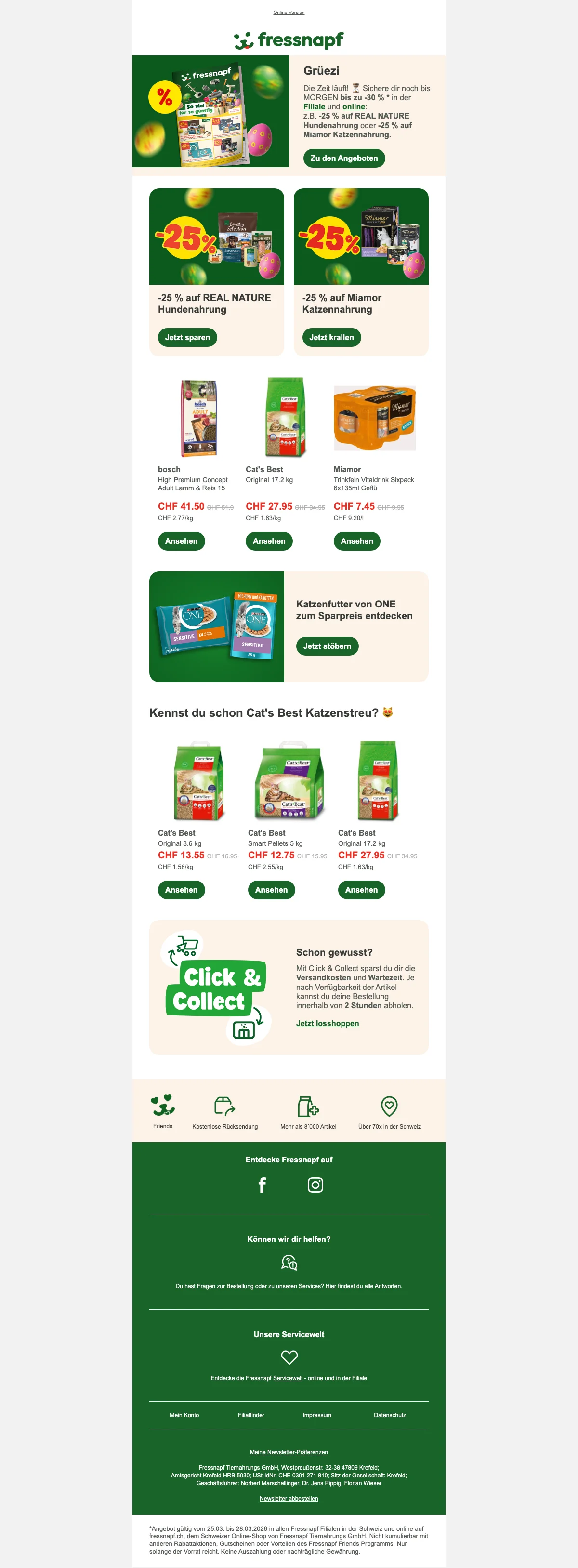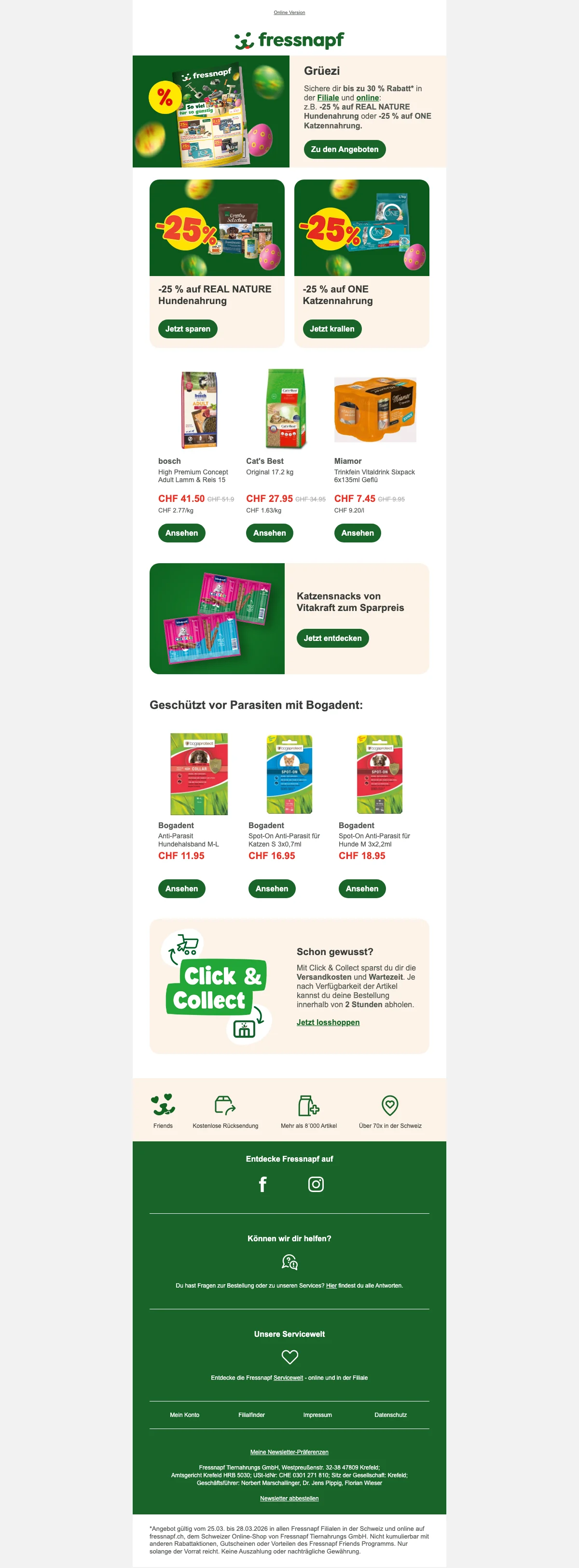 Bestell jetzt Fressnapf Eigenmarken und spare 10%. Fressnapf bietet die besten Angebote auf Artikel für Haustiere an. Schlag jetzt zu und hold dir Top-Ware zum besten Preis!
