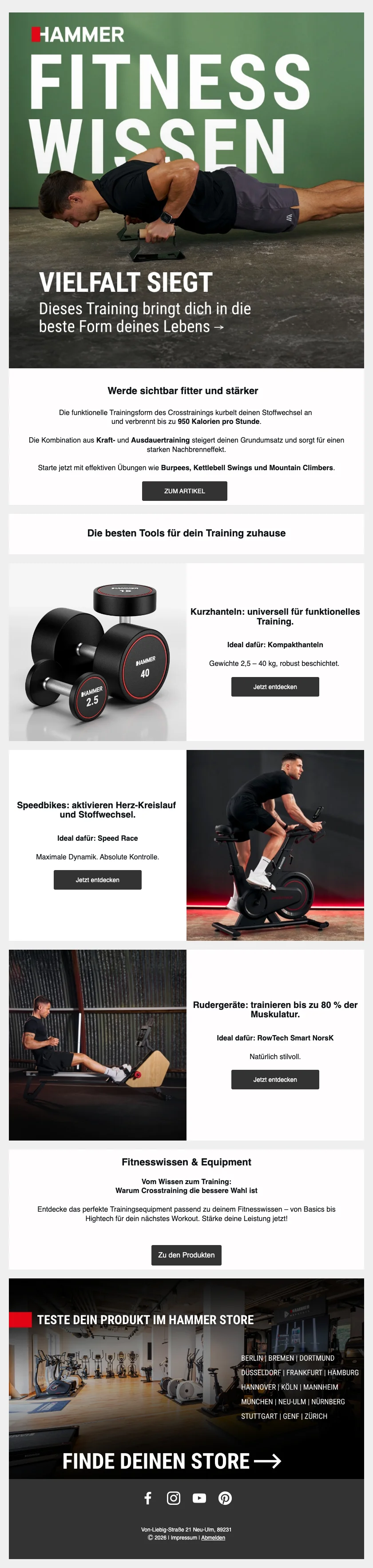 Hammer Fitnessgeräte Ausdauer-Sonderangebot (100 CHF Rabatt auf Fitnessgeräte)