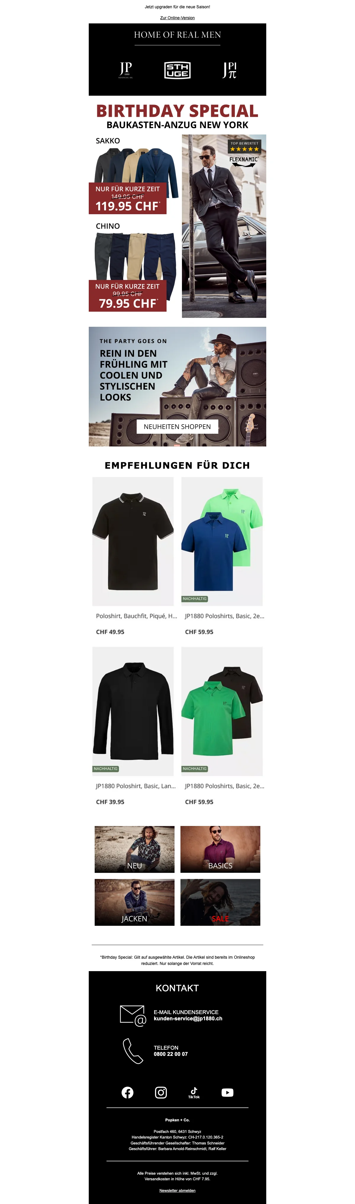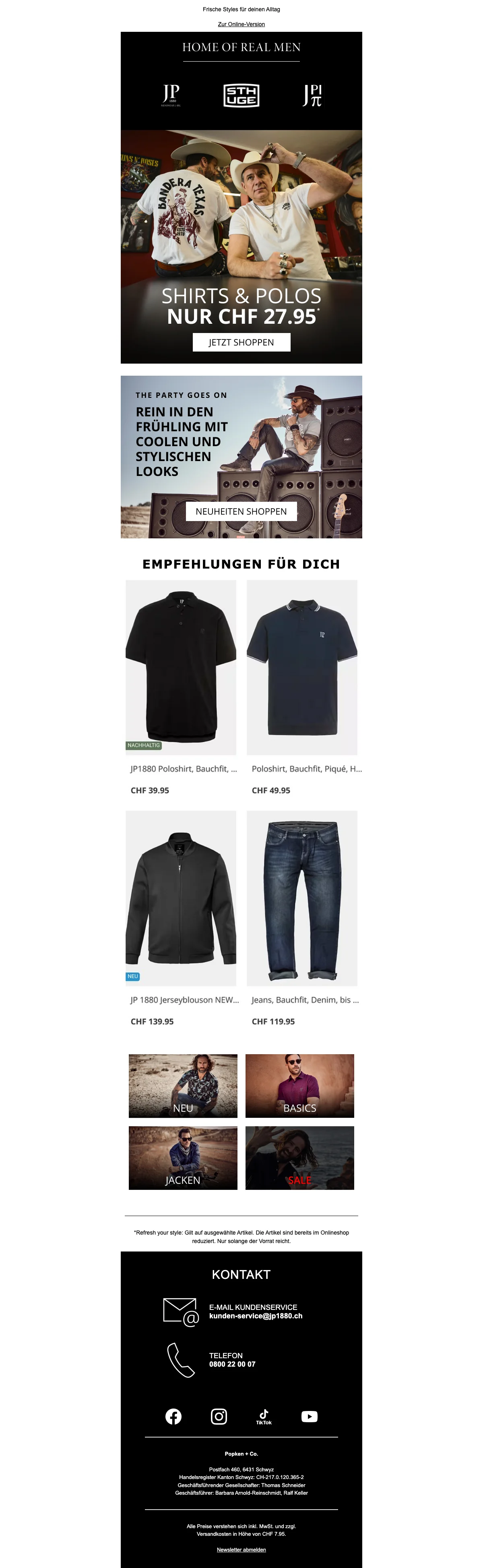 JP1880 versanddeal: gratis versand ab 79 CHF – nur heute sichern
