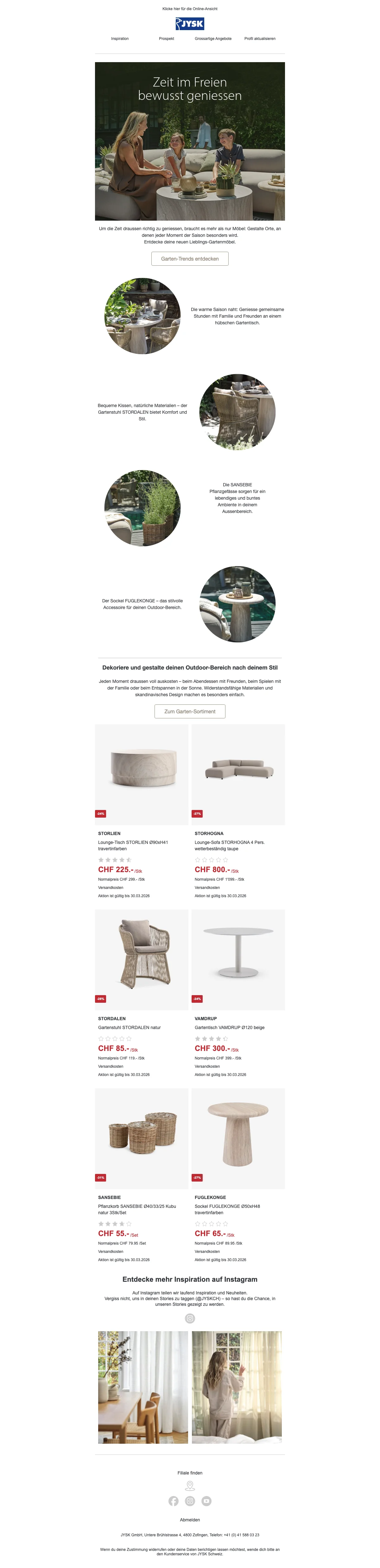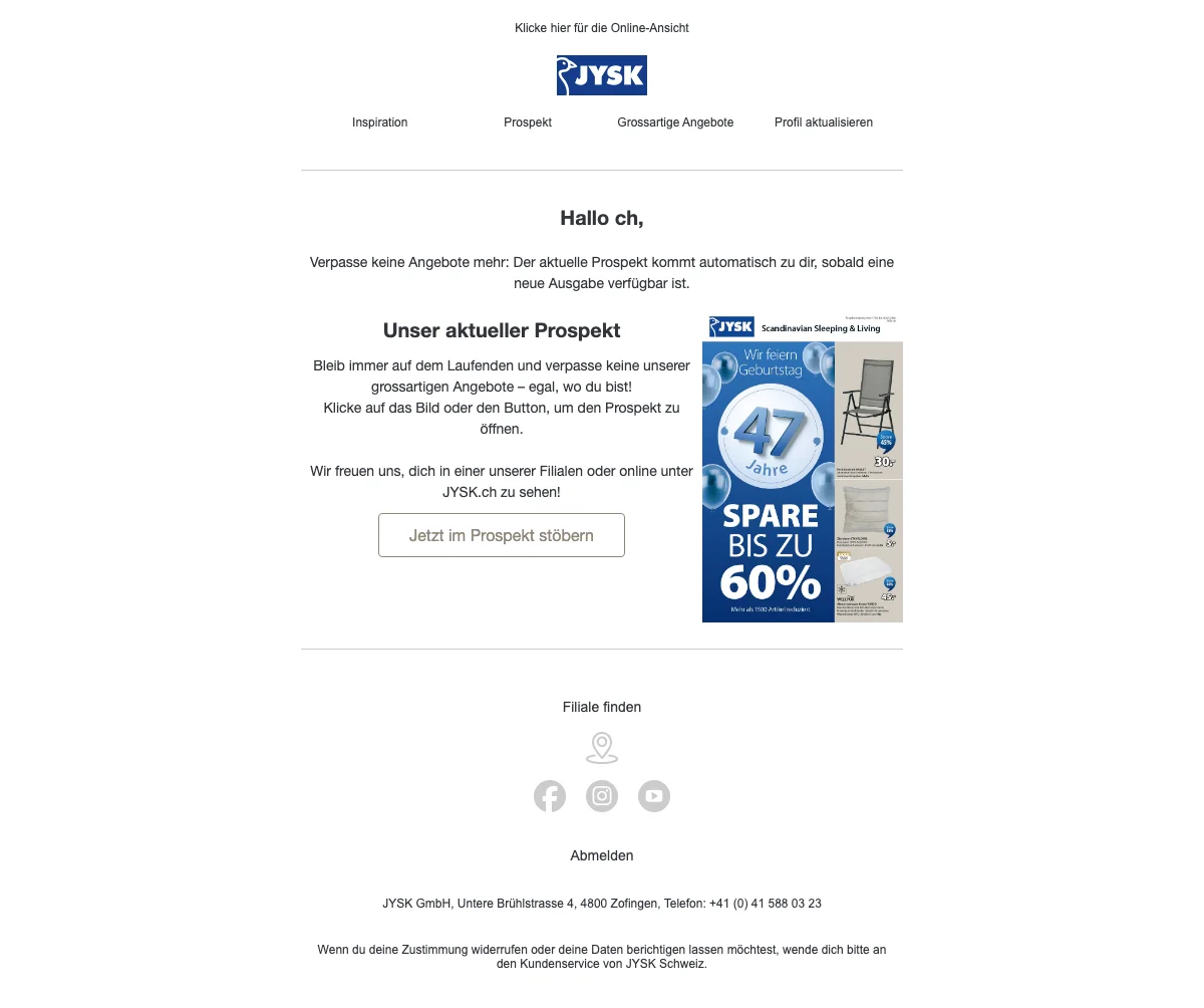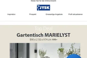 Bei Newsletteranmeldung CHF 30.- Gutschein bei JYSK sichern