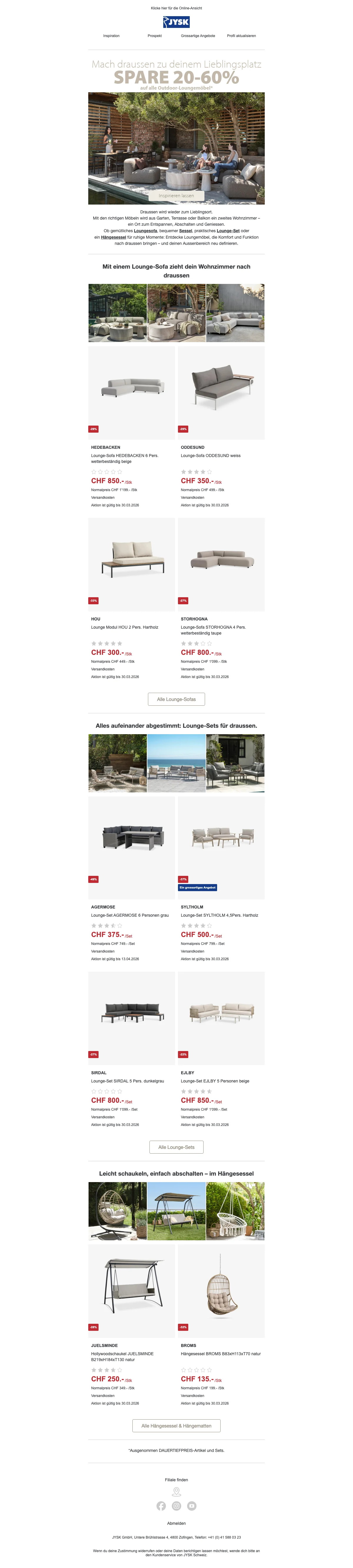 JYSK outdoor-angebot loungemöbel 20–60% rabatt bis 30.03.2026