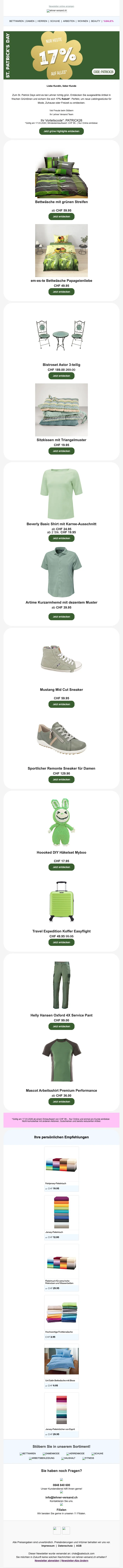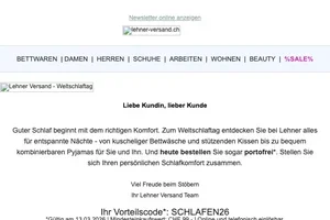 Lehner Versand bietet dir stets attraktive Aktionen, von Topseller bis hin zu echten Schnäppchen im Sale Bereich. Wir, von Saleduck.ch, sind täglich auf der Suche nach neuen Gutscheinen, Rabatten, Angeboten und Aktionen für dich. Schau also regelmäßig vorbei, damit dir keine Deals durch die Lappen gehen.