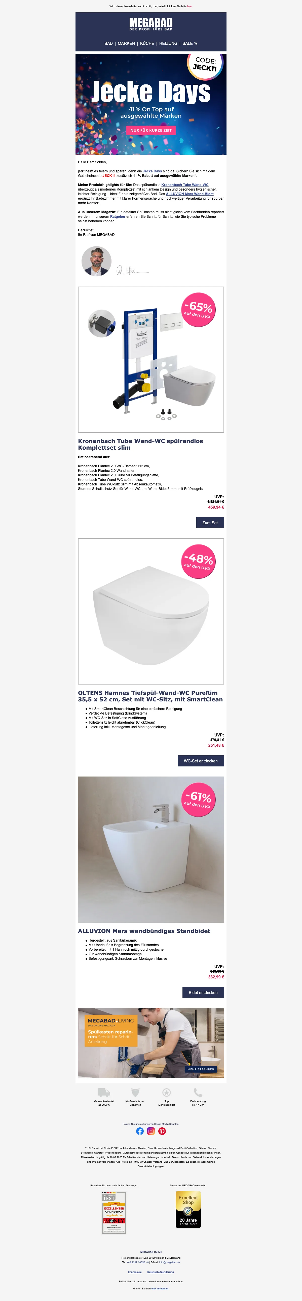 Megabad Kaldewei-Aktion: 10% Rabatt auf das gesamte Sortiment
