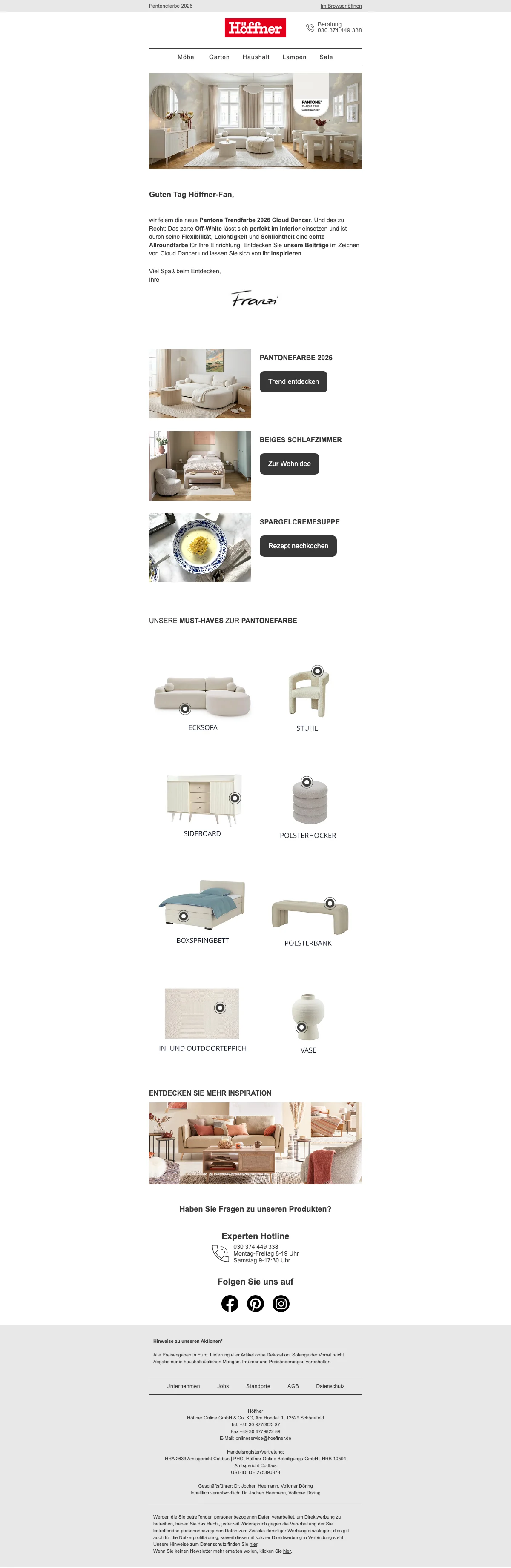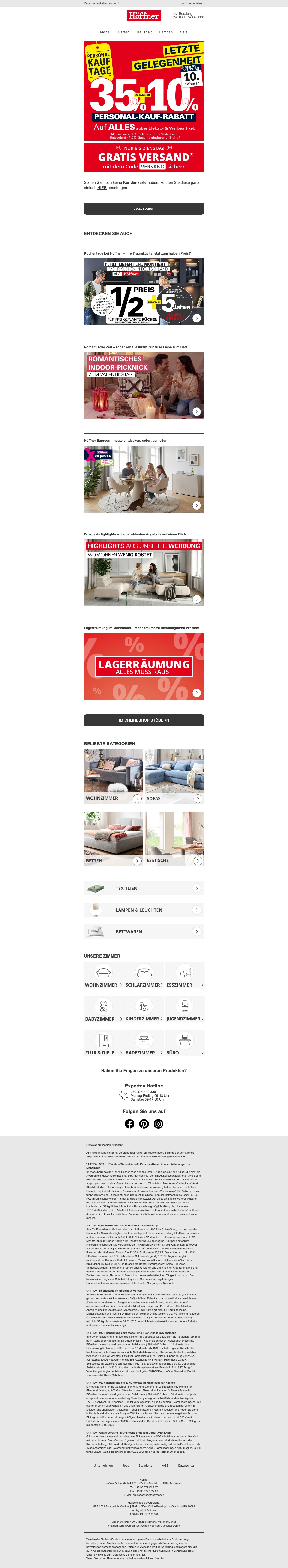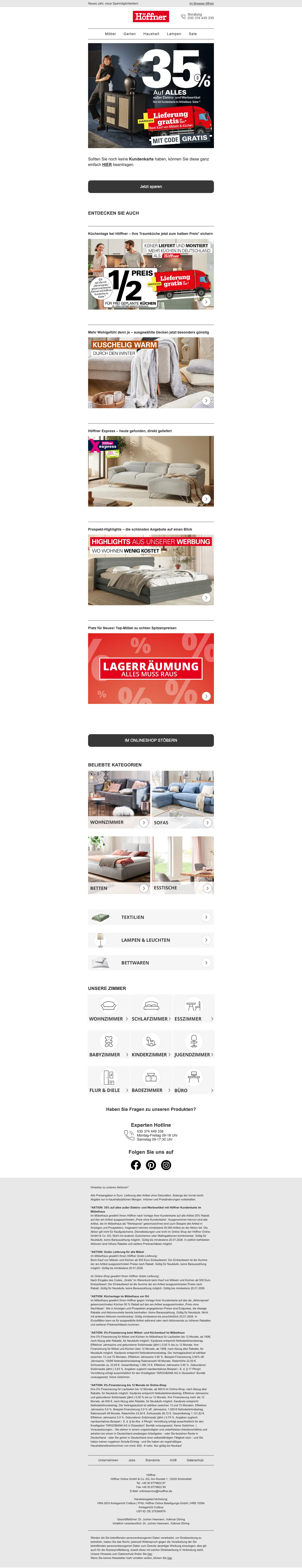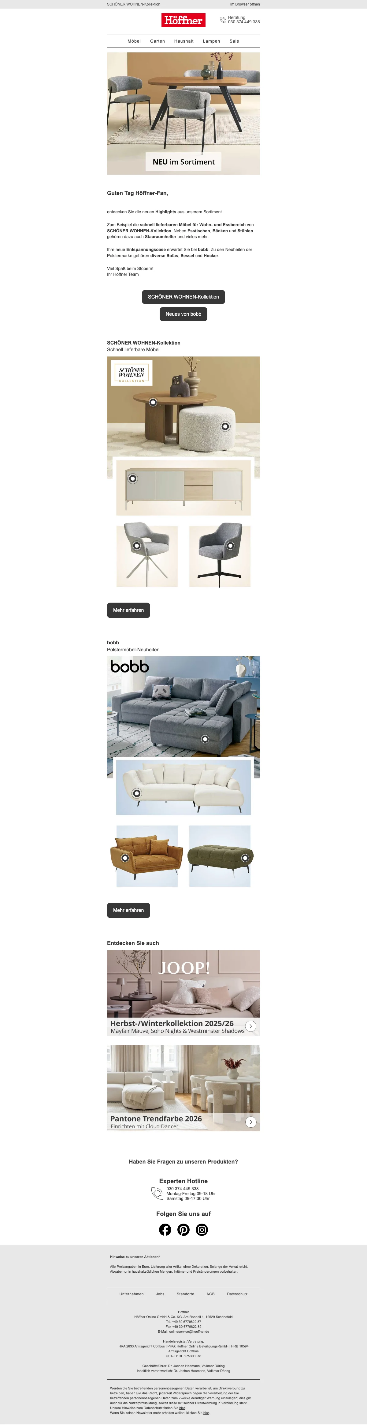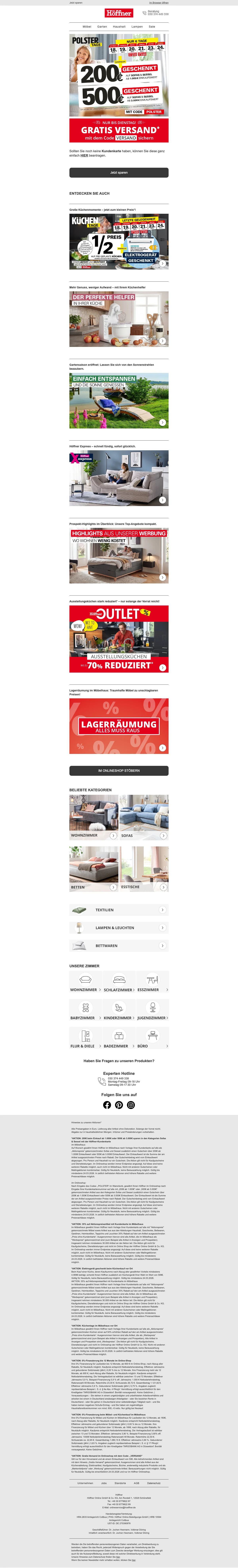 Höffner Rabatte auf Wohnzimmermöbel - bis zu 40 %