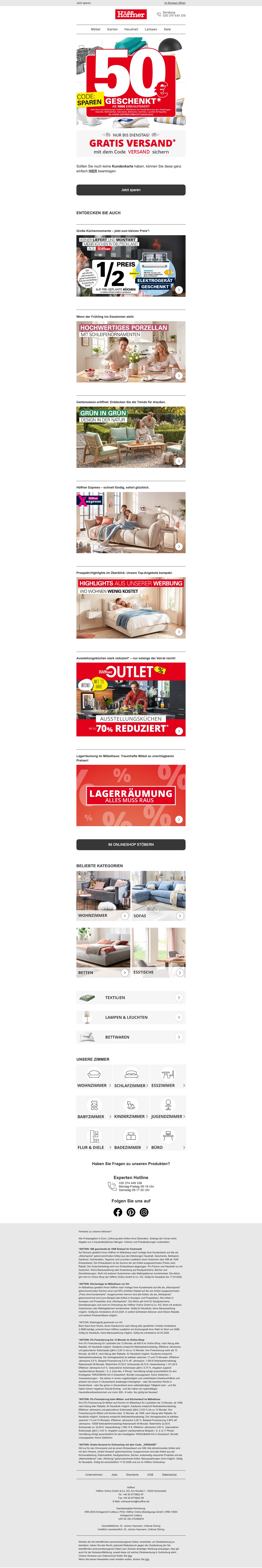 Verwandeln Sie Ihr Wohnzimmer mit stilvollen Möbeln von Höffner und sparen Sie 40% auf das gesamte Sortiment. Egal ob klassisch oder modern, hier ist für jeden Geschmack etwas dabei. Schlagen Sie jetzt zu und werten Sie Ihr Zuhause auf.