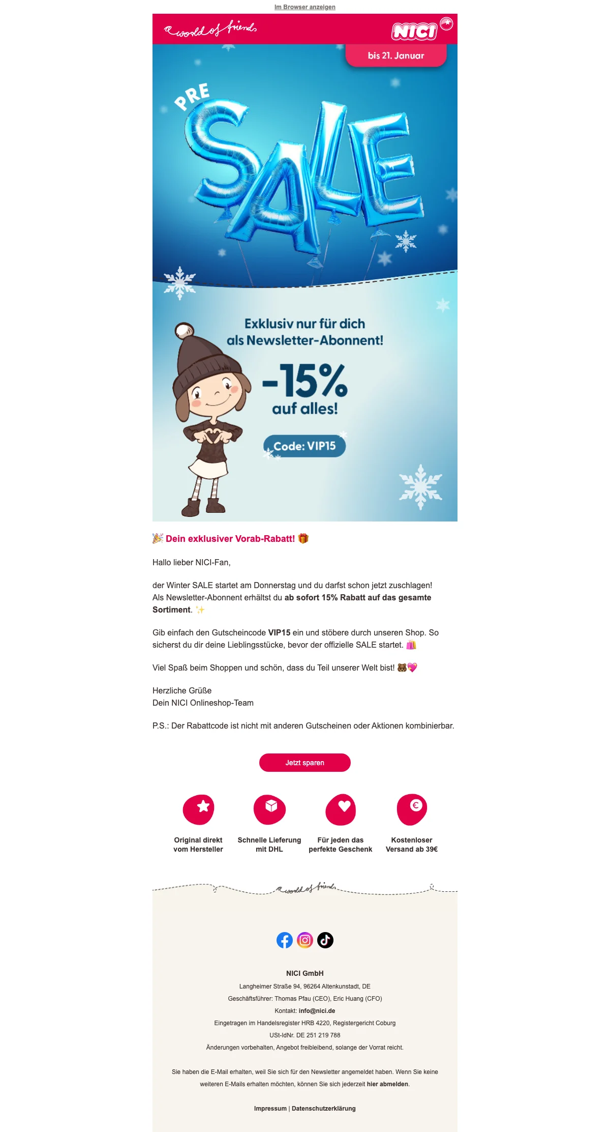 Hol dir jetzt die süßesten Plüschtiere zum besten Preis bei Nici. Hier findest du viele tolle Angebote für tolle Kuscheltiere. Diese solltest du dir nicht entgehen lassen!