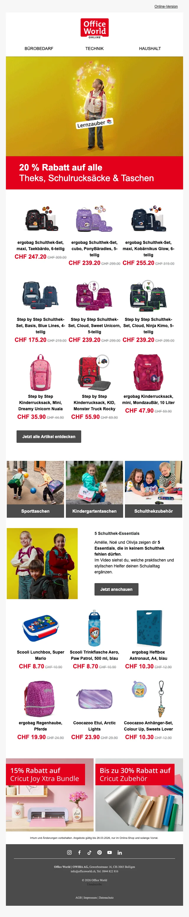 CHF 10.- Gutschein Officeworld für die Anmeldung des Newsletters