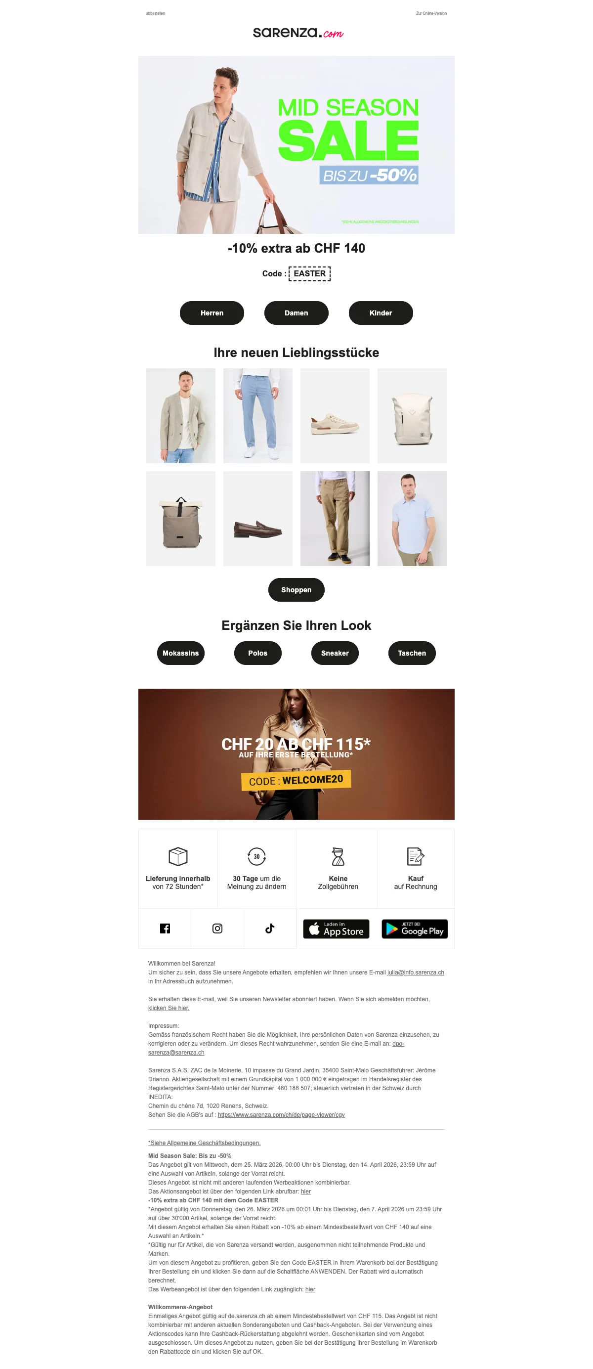 Nicht nur Schuhfans werden hier finden, was sie suchen, sondern auch Accessoires-Liebhaber. Von einer neuen Handtasche bis hin zum schönen Tuch. Bei Sarenza kommst auch du auf den Geschmack von schönen Accessoires. Schaue doch einfach im Shop vorbei und überzeuge dich selbst. Vielleicht landet ja gleich ein schöner Nagellack, ein neues Paar Socken oder doch eine der heiß begehrten Handtaschen in deinem Warenkorb.