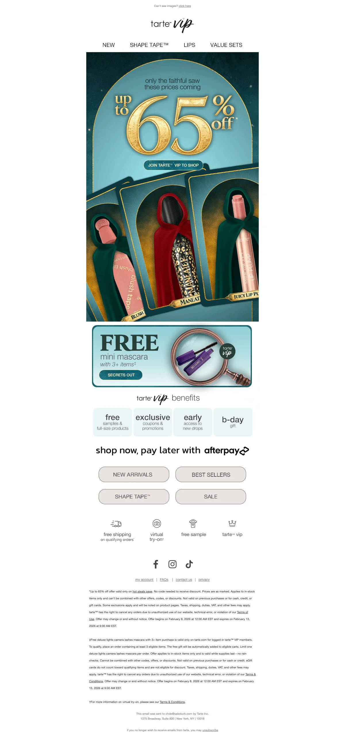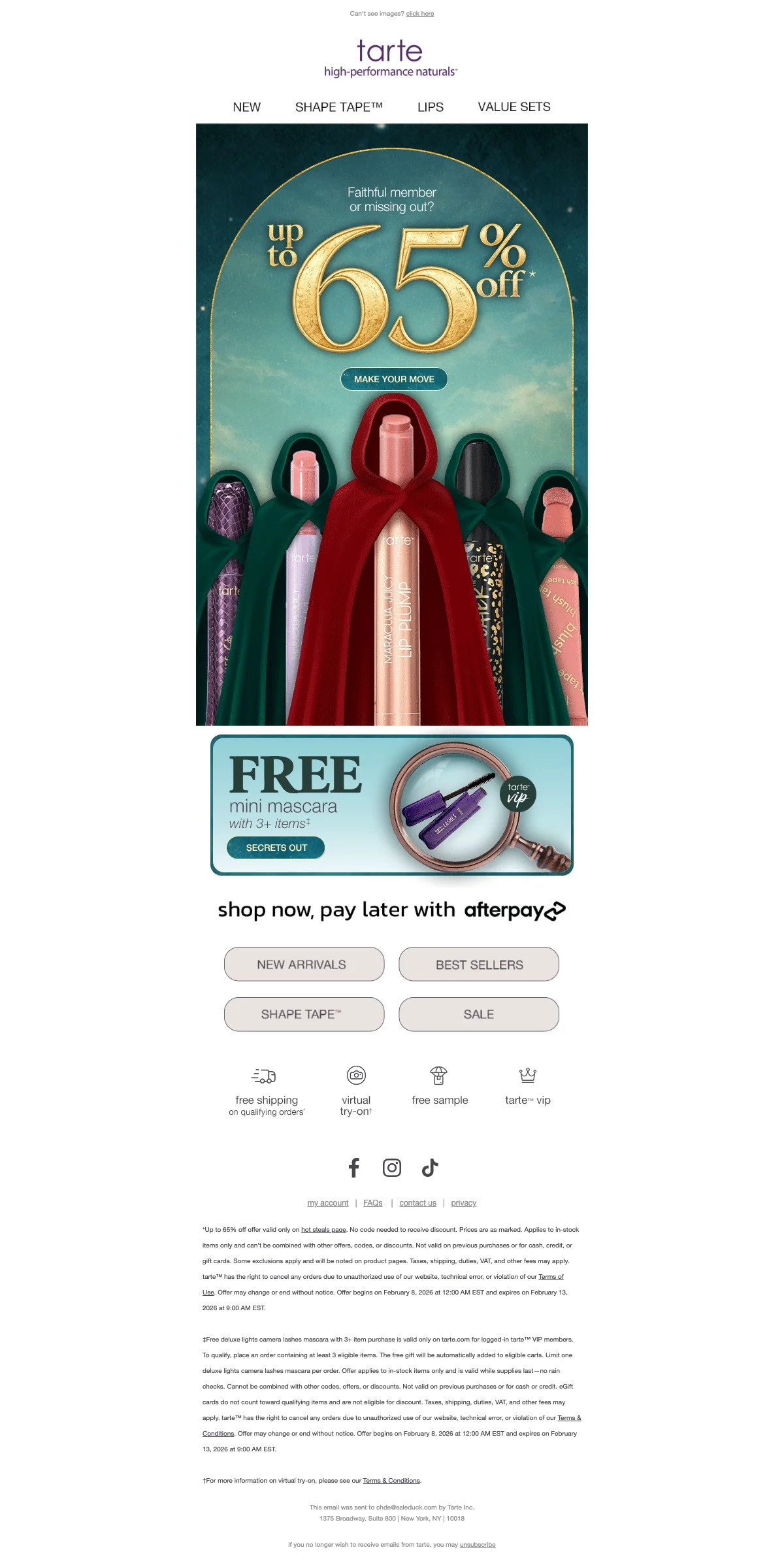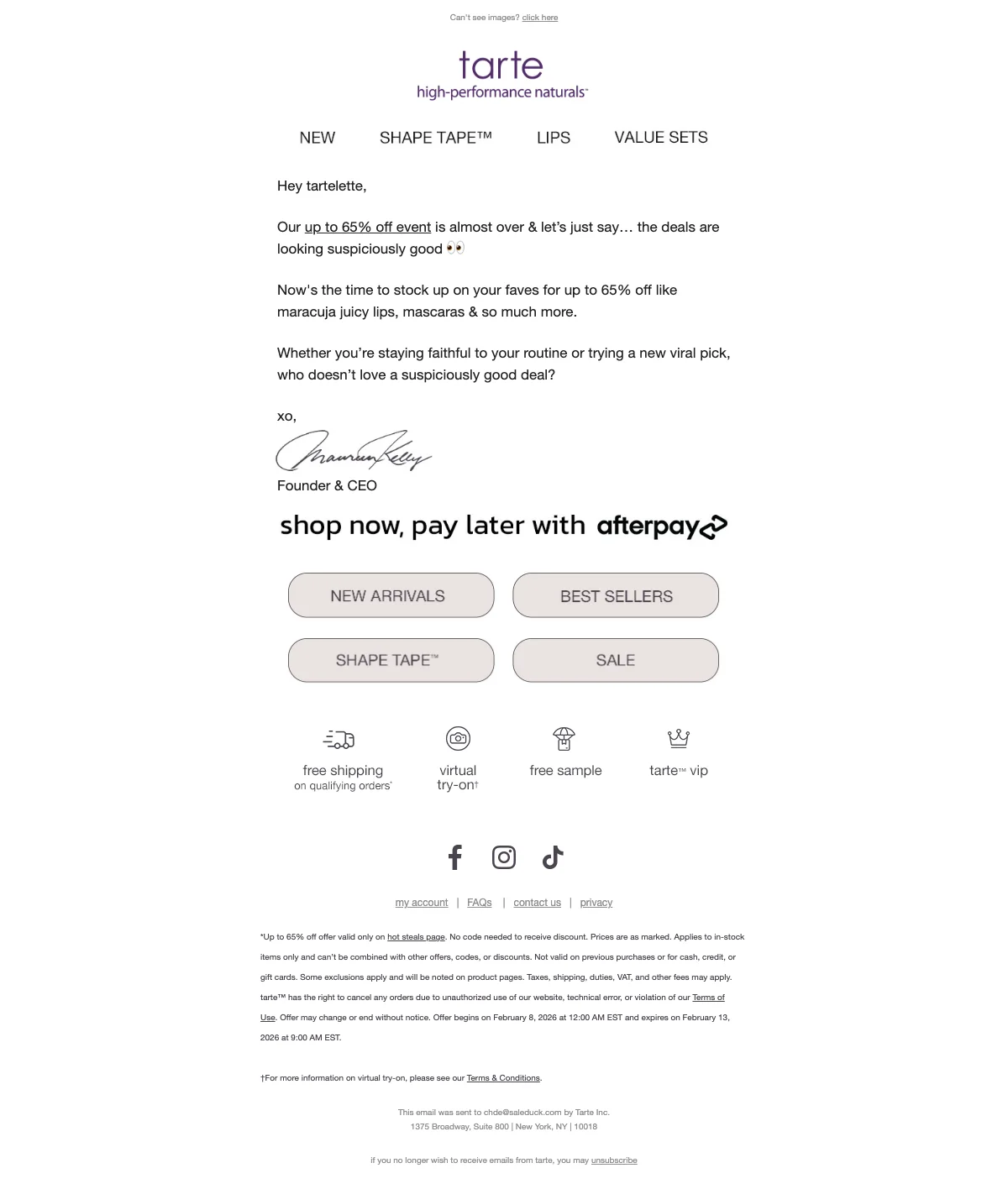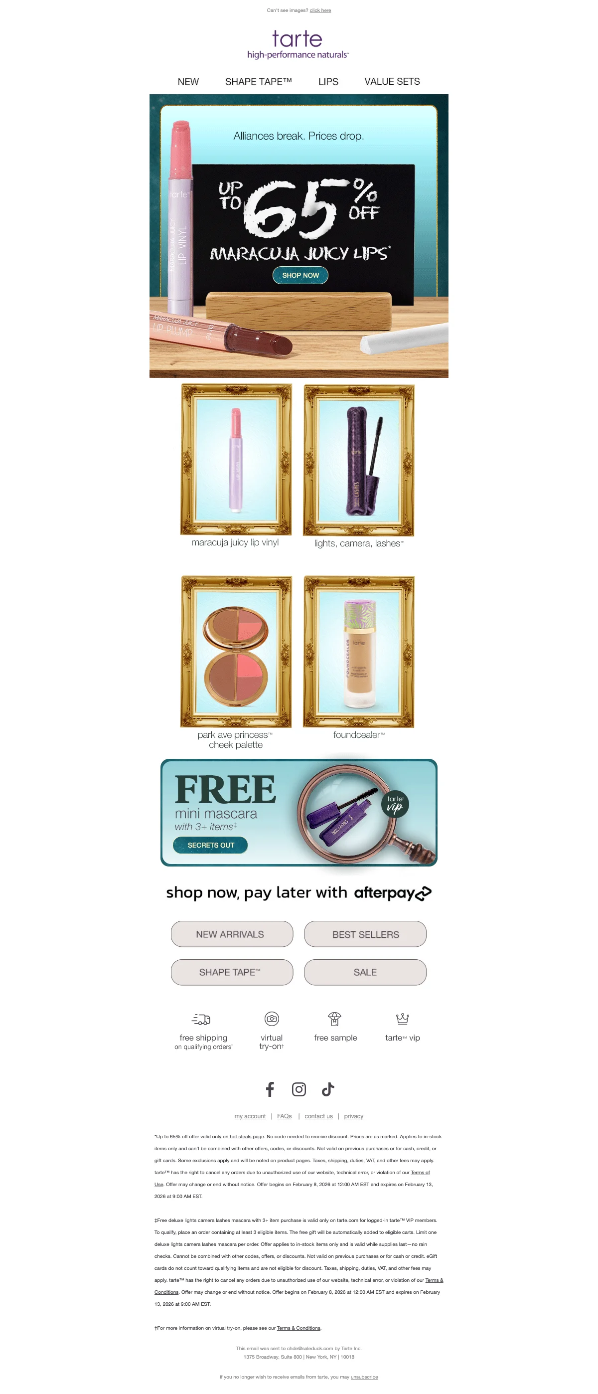 Tarte Cosmetics willkommensangebot: 15% Rabatt mit Code