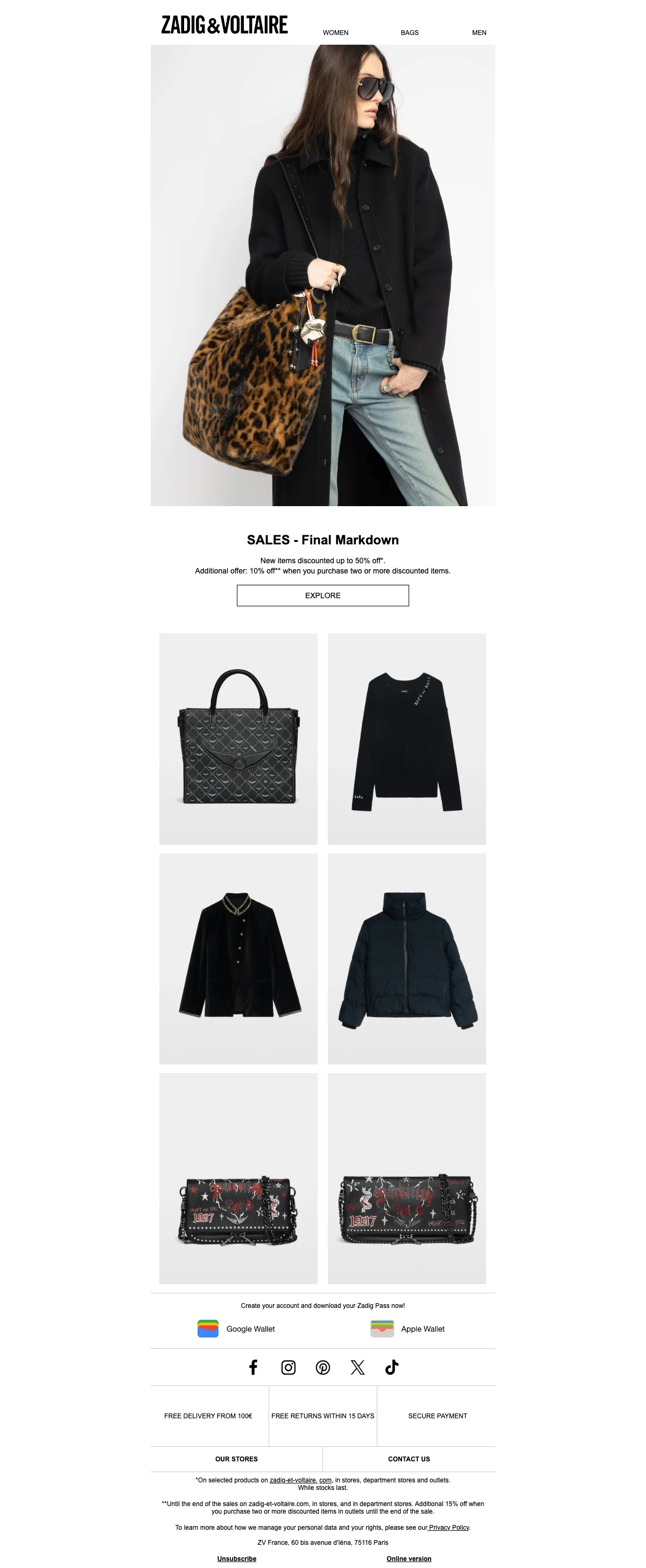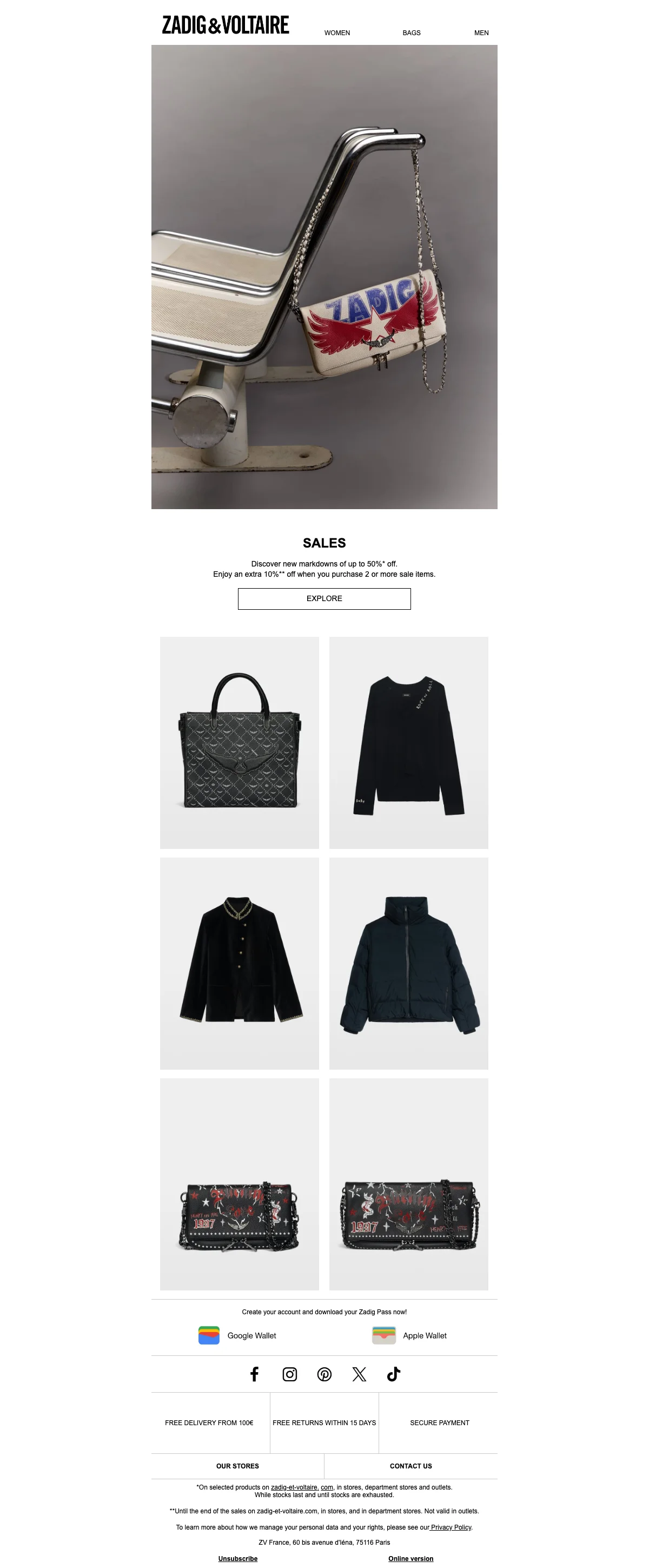Zadig Voltaire letzte chance bis zu 50% rabatt, 10% extra